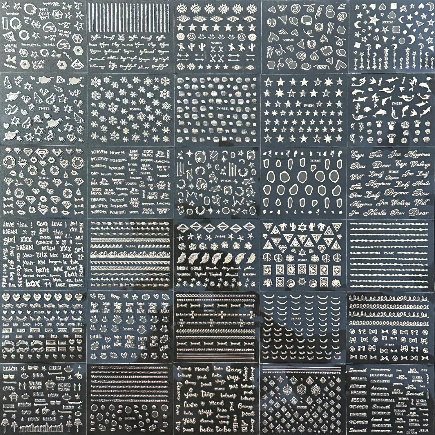- Silver Nail Stickers: You will get 30 styles silver nail decals in one set of different line star and heart shapes nail stickers,satisfy all your love for beautiful nails, a variety of elements for you to choose from to DIY your own nail art design.
