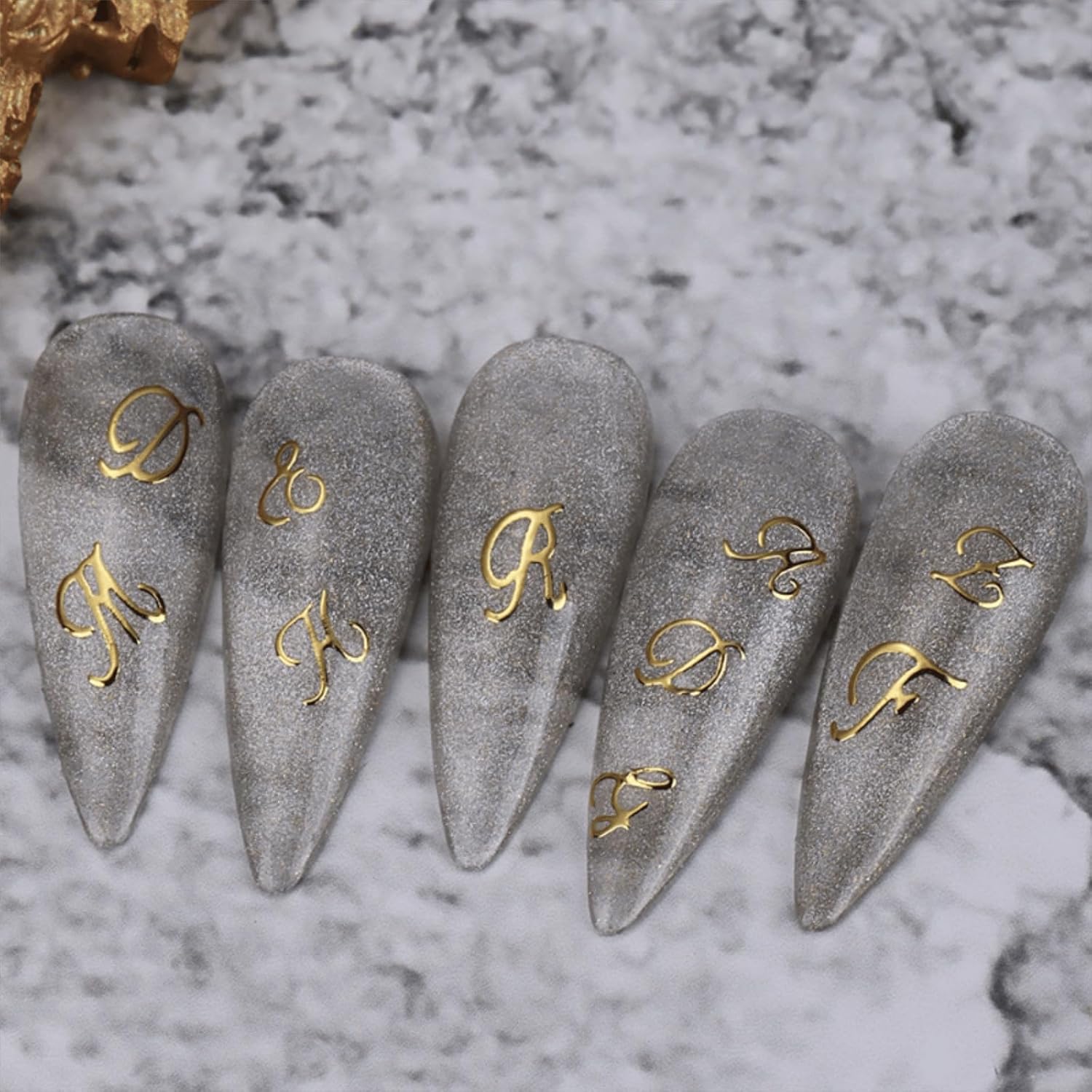 - ăEnglish Nail StickersăYou will get 12 sheets letters nail decals in one set of different old English nail stickers, satisfy all your love for beautiful nails, a variety of elements for you to choose from to DIY your own nail art design.