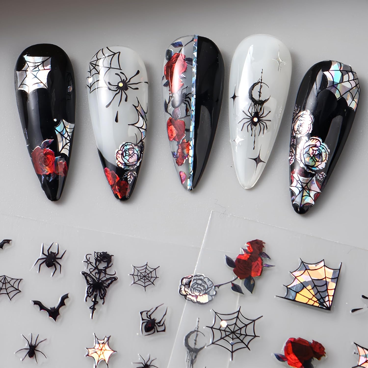 - Black Bat Self-Adhesive Design: 3D cute nail decals for nail art design is simple and quick to use, nail stickers work great on bare nails, they will stay on for a long time and will not peel off your nails, enjoy the feeling of nail art