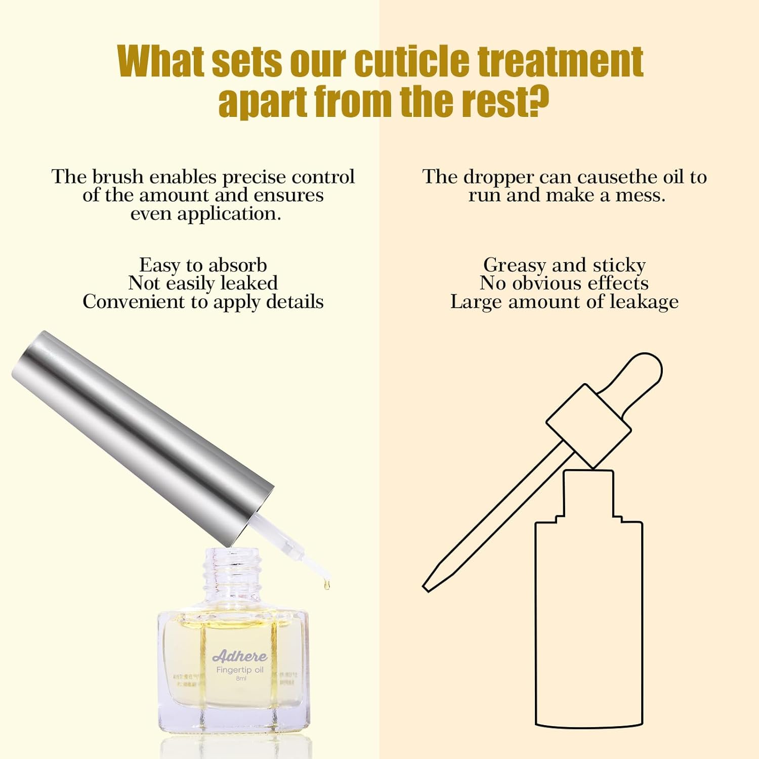- 【Easy to Apply】With the practical brush, applying the oil is simple and precise. A few drops of cuticle oil for nails can work wonders, keeping nails and cuticles healthy and beautiful. For proper use, it is recommended to apply the product directly on the cuticles and massage with circular motions until the cuticle oil is absorbed.
