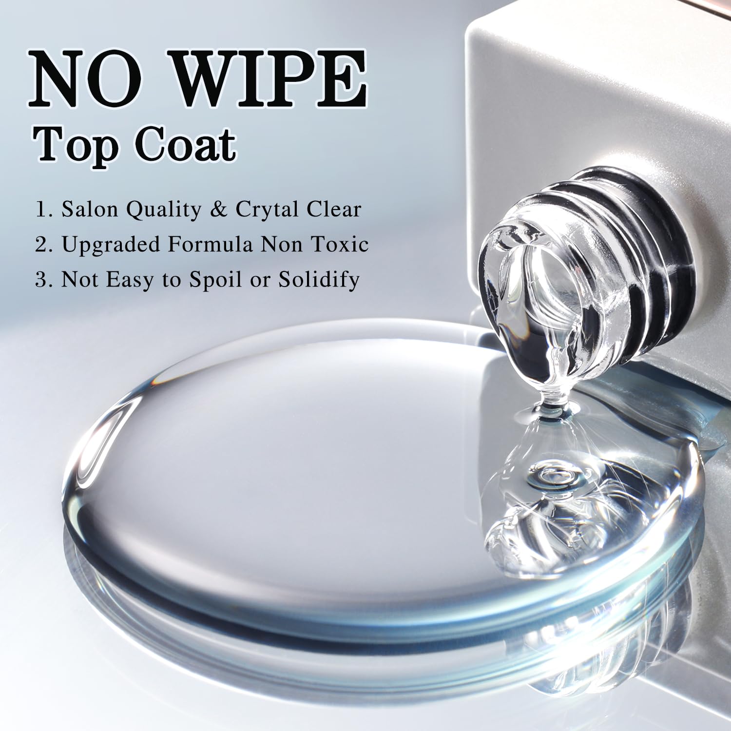 Double Rhythm 15ML No Wipe Gel Top Coat Base Coat Iridescent Glitter Shimmer 2 in 1 Nail Polish Soak Off Manicure DIY Home Salon (Clear)