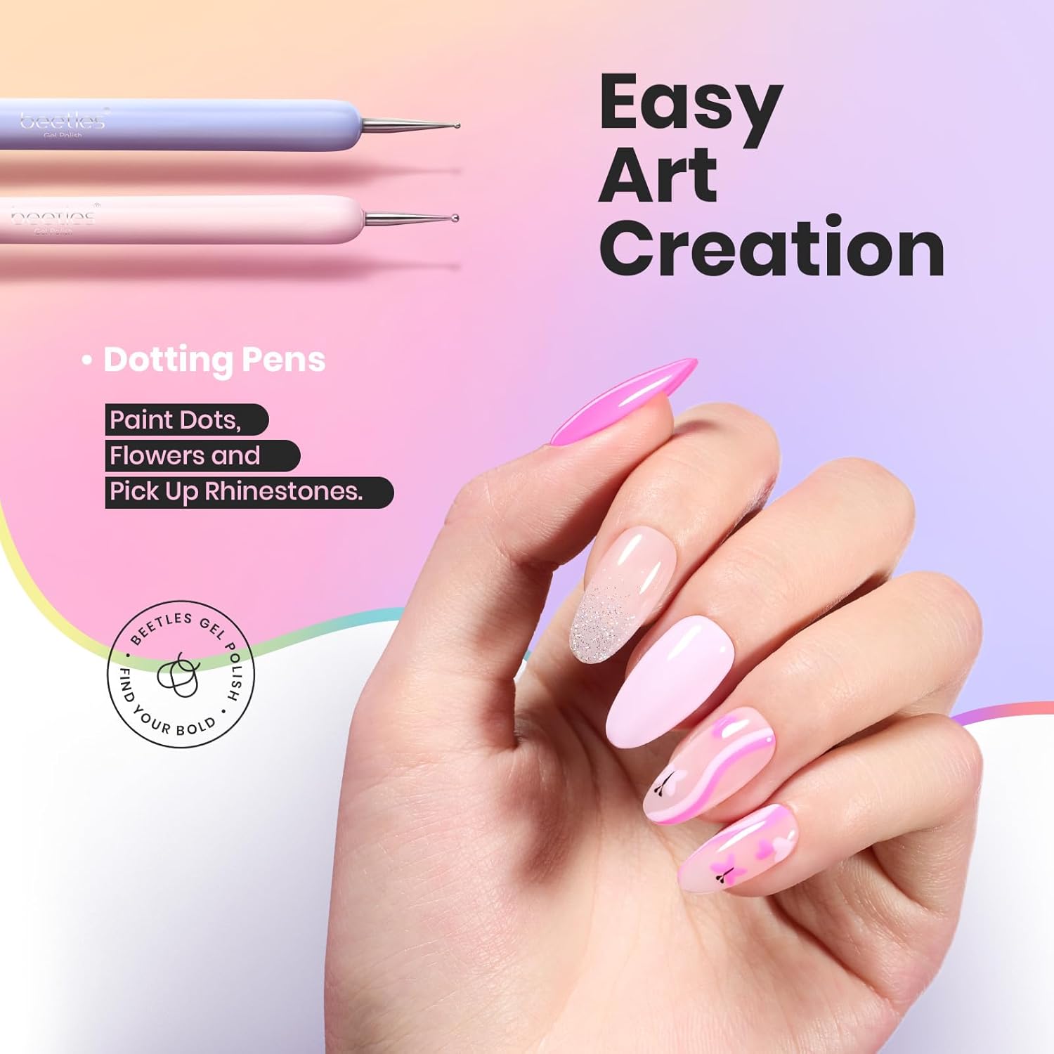 Beetles Nail Art Brushes, 6pcs Nail Art Tool Set, Nail Double-headed Dotting Tools, Striping Nail Art Brushes for Long/Short Lines, Nail Drawing Pen with Nail Brush Holder&Palette For Nail Design