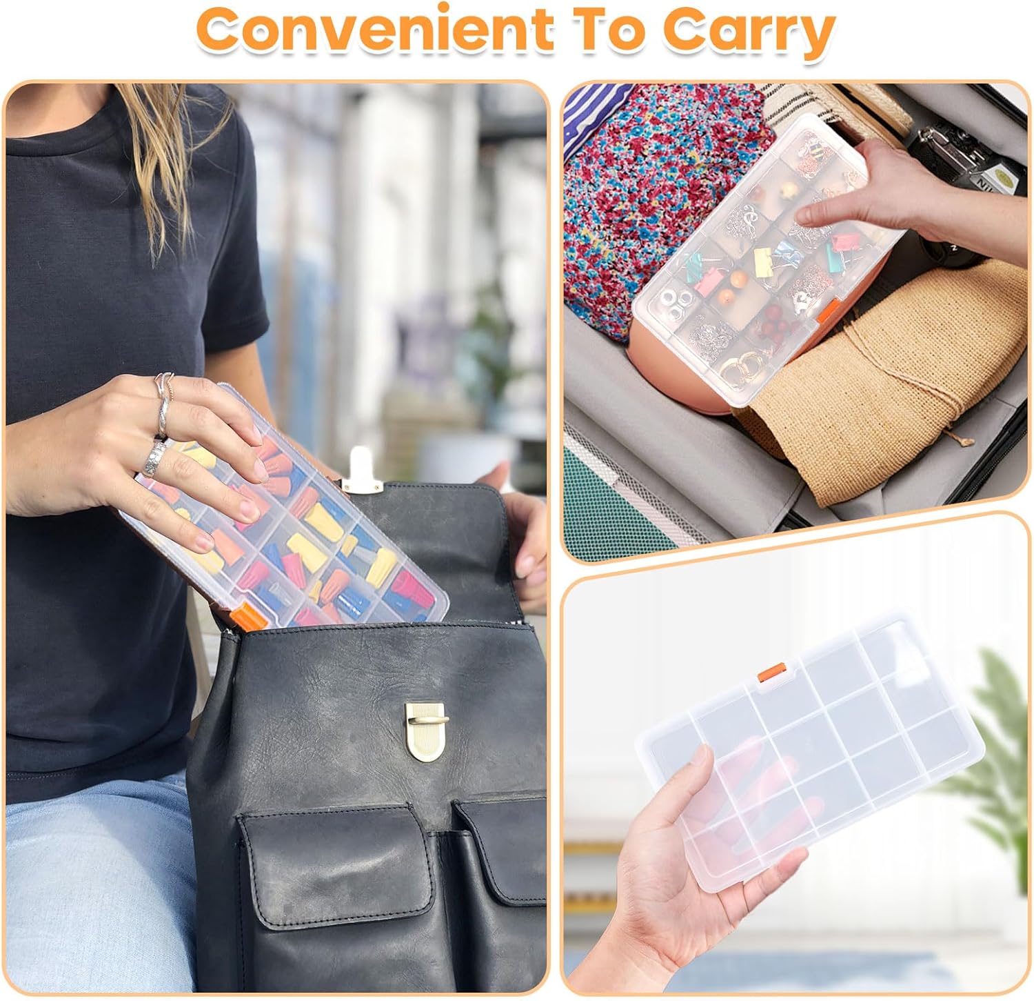 - 【 Carefully Designed 】: The bead organizer adopts a buckle design, which can safely fix the items inside the box and prevent them from falling off. Bottom anti slip design, stackable storage. Dustproof and waterproof, protecting your items from damage, you can use transparent jewelry box storage containers with confidence.