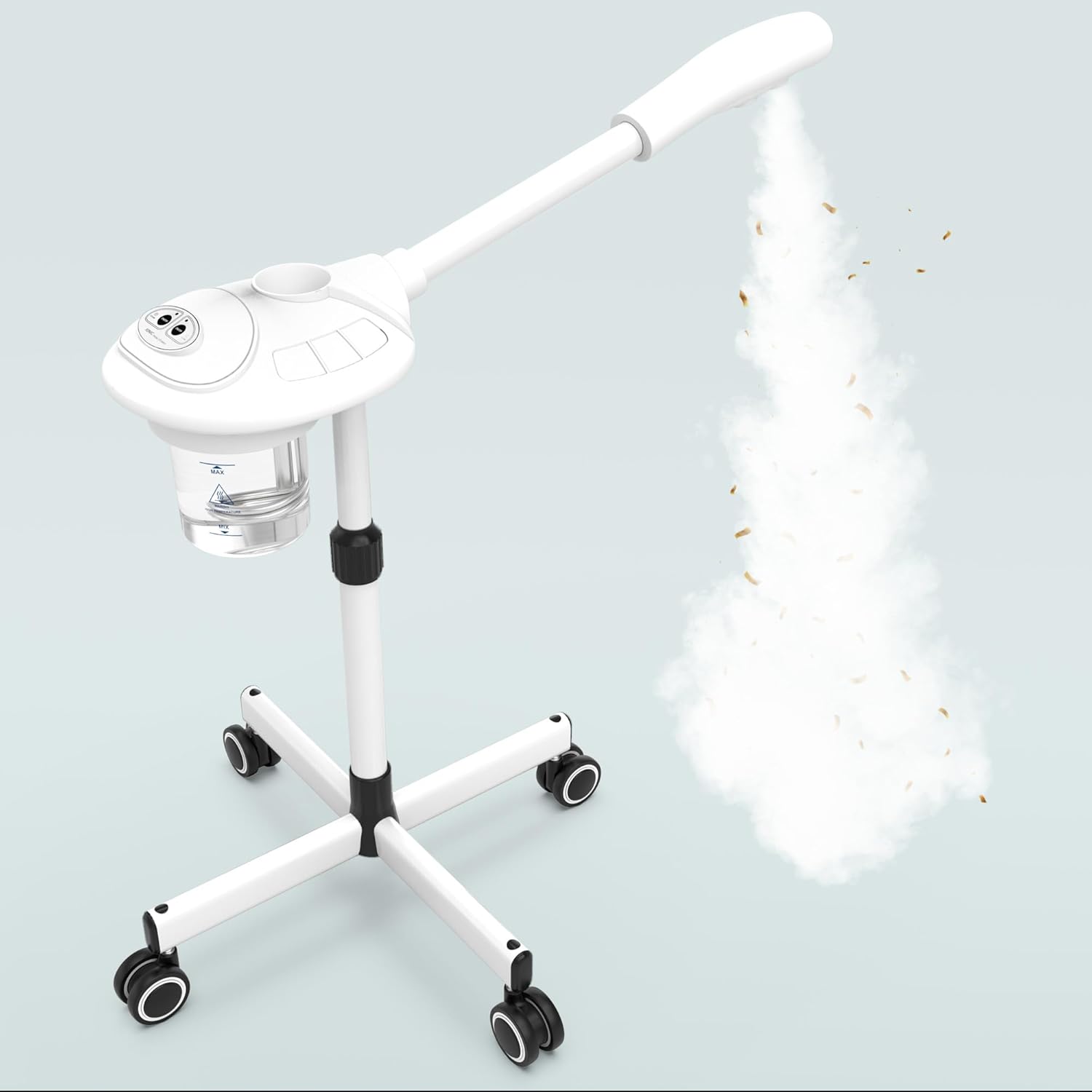 TASALON Professional Facial Steamer with Ozone, Vapor ozono Facial Steamer Professional for Clean Skin, Firm Pores, Esthetician Steamer for Home or Salon Use, Adjustable Height and Angle,White