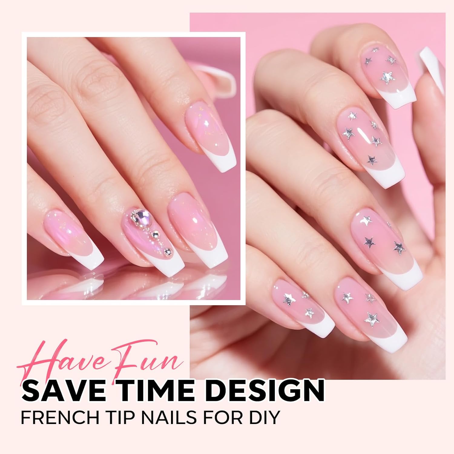 - PMMA Soft Material: These premium French nails tip feature flexible yet durable PMMA soft gel material with a pre-designed curvature that seamlessly blends with your natural nail shape for a flawless, salon-quality finish.