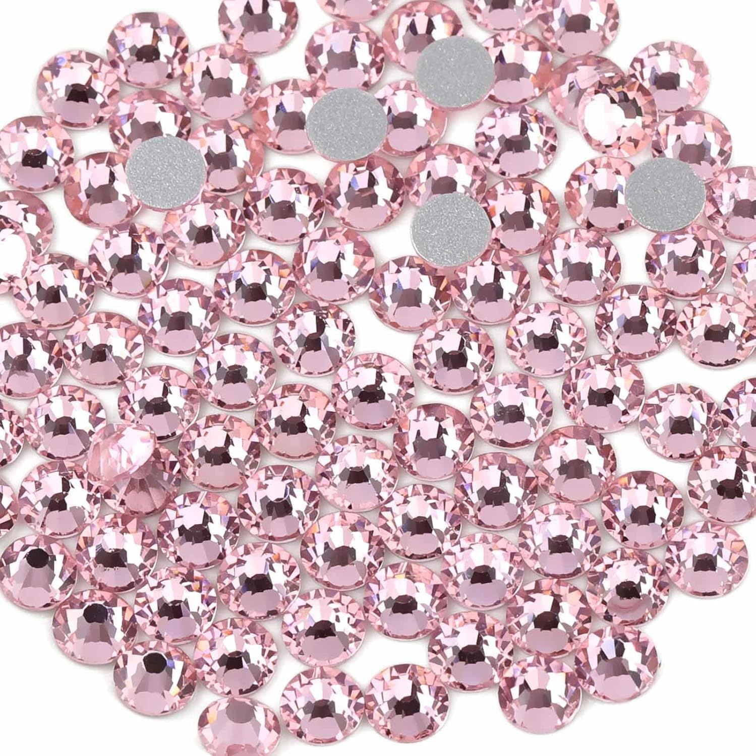 Beadsland 144pcs Flat Back Crystal Rhinestones Round Gems for Nail Art and Craft Glue Fix, Light Pink, SS40, 8.4-8.7mm