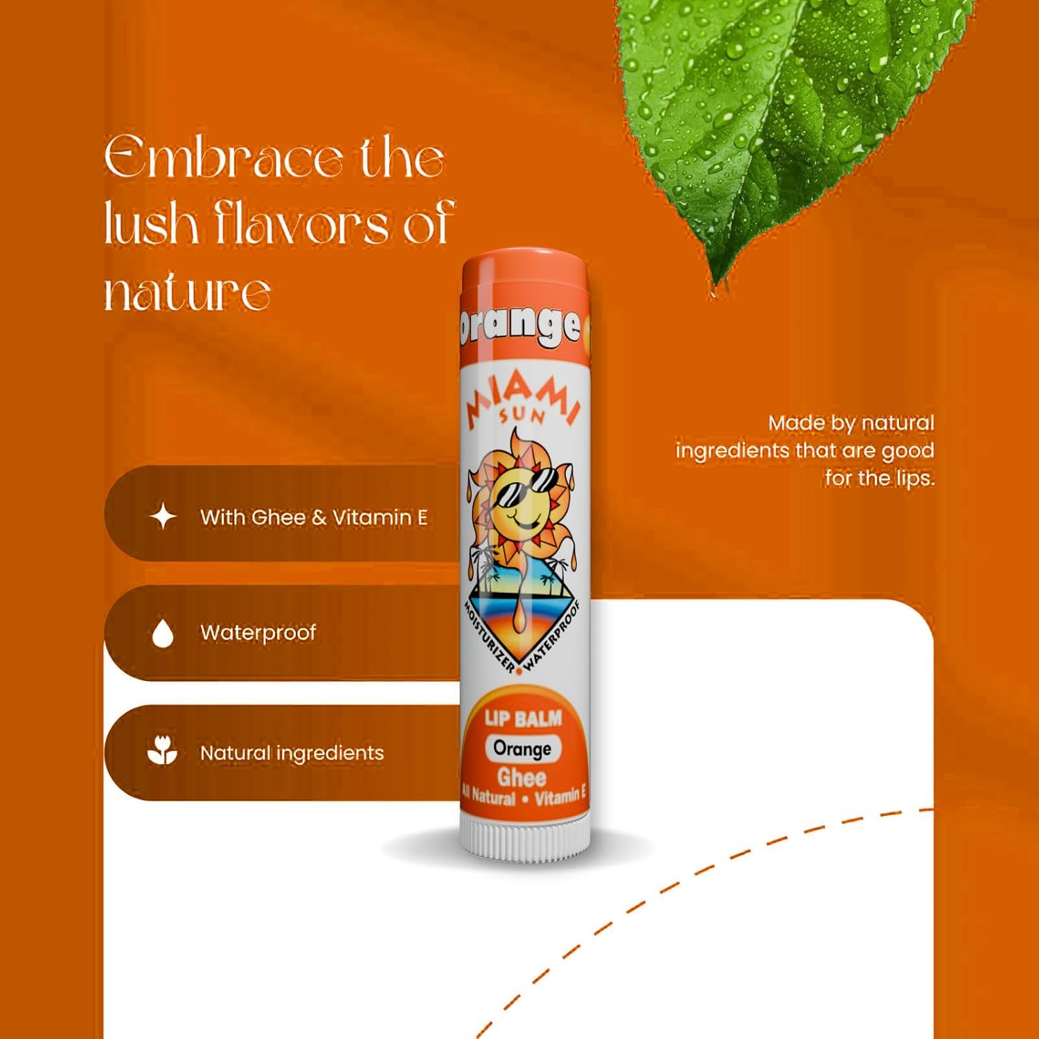 Miami Sun Natural Ghee Lip Balm, Hydrating Lip Treatment with Shea Butter & Beeswax, Organic & Non-Toxic, Best for Dry, Chapped Lips - Moisturizing, Healing, Chemical-Free Lip Repair (2 Count, Orange)