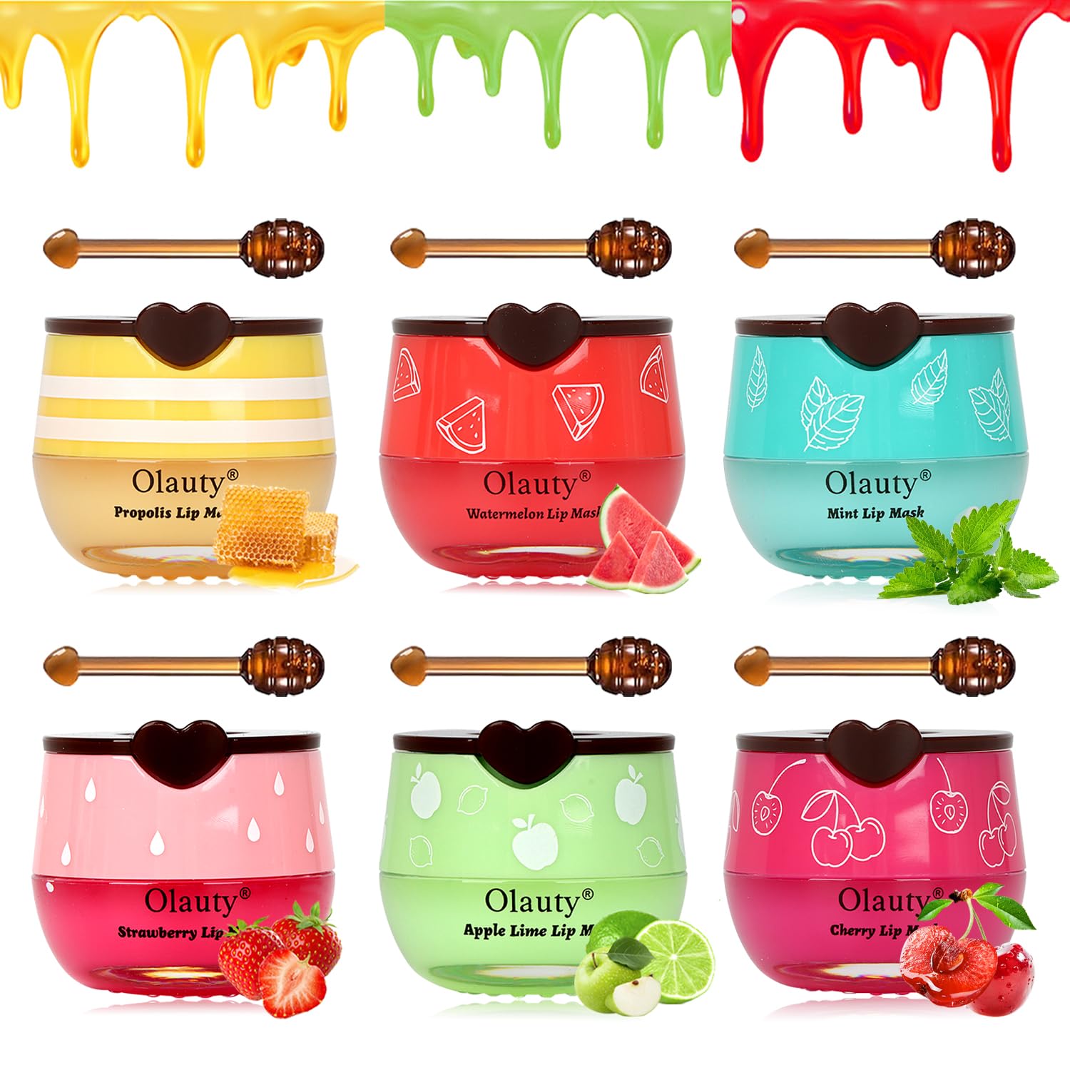 6 PCS Bee Lip Balm Lip Care,Fruit Extract &Vitamin E with Propolis Lip Sleeping Mask Honey Pot,Hydrating Prevention Dry,Moisturizing Lip Mask Overnight Reduces Lip Lines