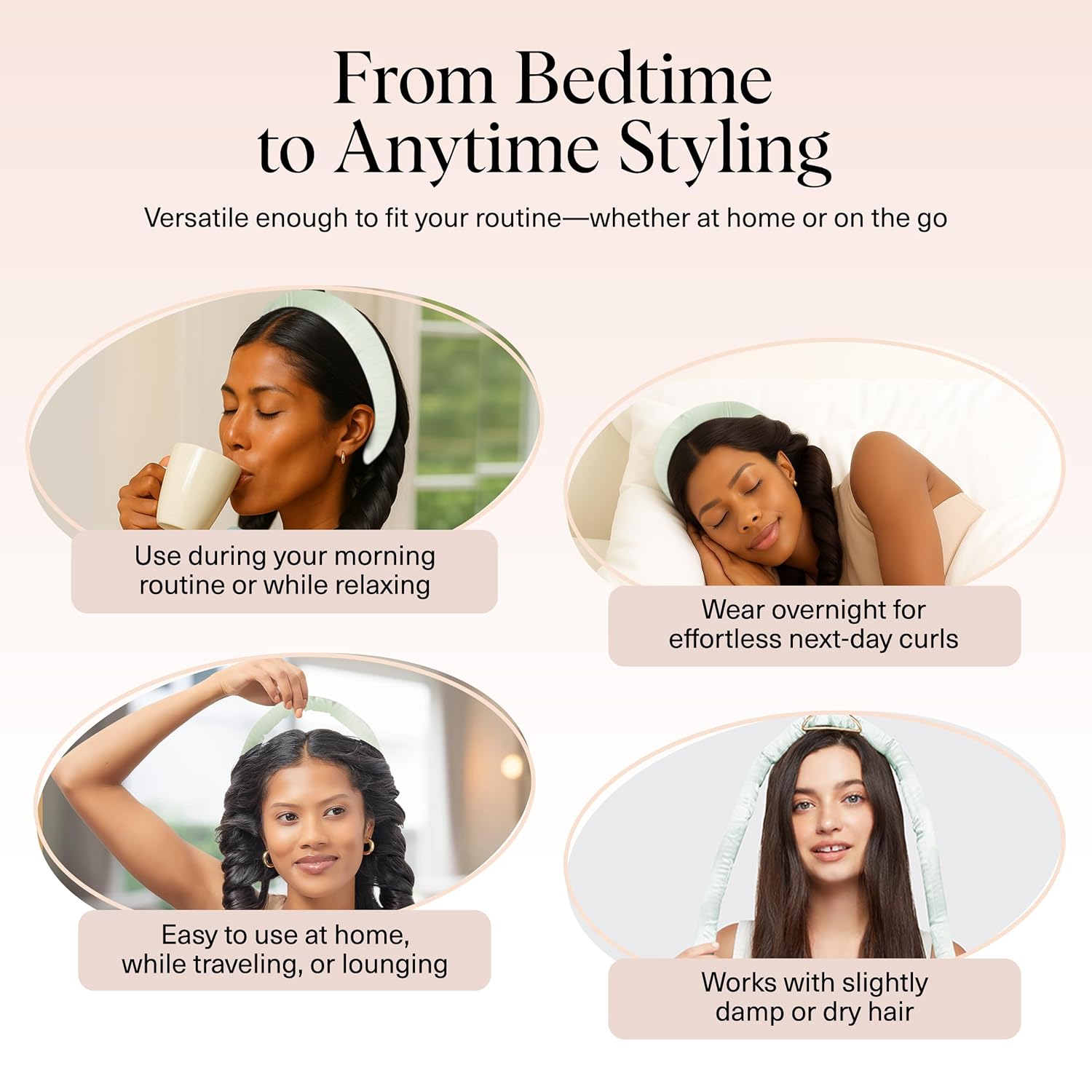 - PERFECT FOR ALL HAIR TYPES: Whether your hair is straight, wavy, long, or medium-length, this versatile overnight curler fits them all! Ideal for teens and adults alike, it’s the best heatless curling solution for achieving salon-worthy curls. Check our size chart for a perfect fit!