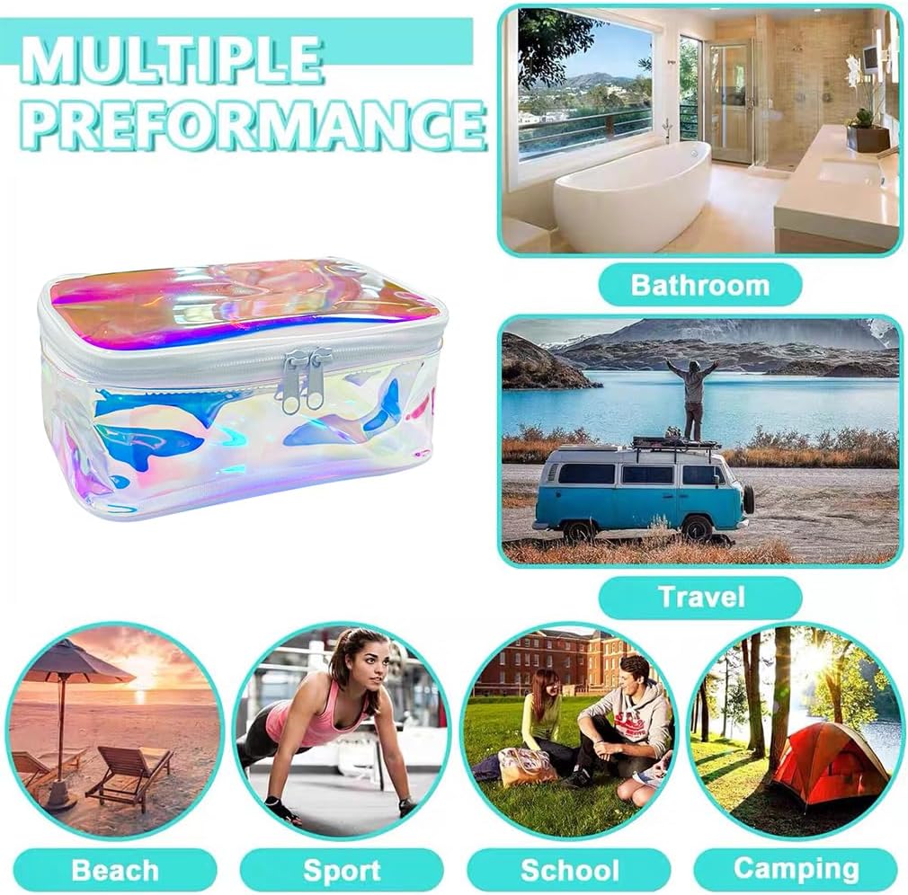 - đ·ăPortable and StylishăOur portable holographic makeup bag is 20x14x8cm/7.87x5.51x3.15inches,lightweight and durable.Transparent material allows for easy visibility of internal items.Convenient for you to quickly find and retrieve items,bringing you more convenience