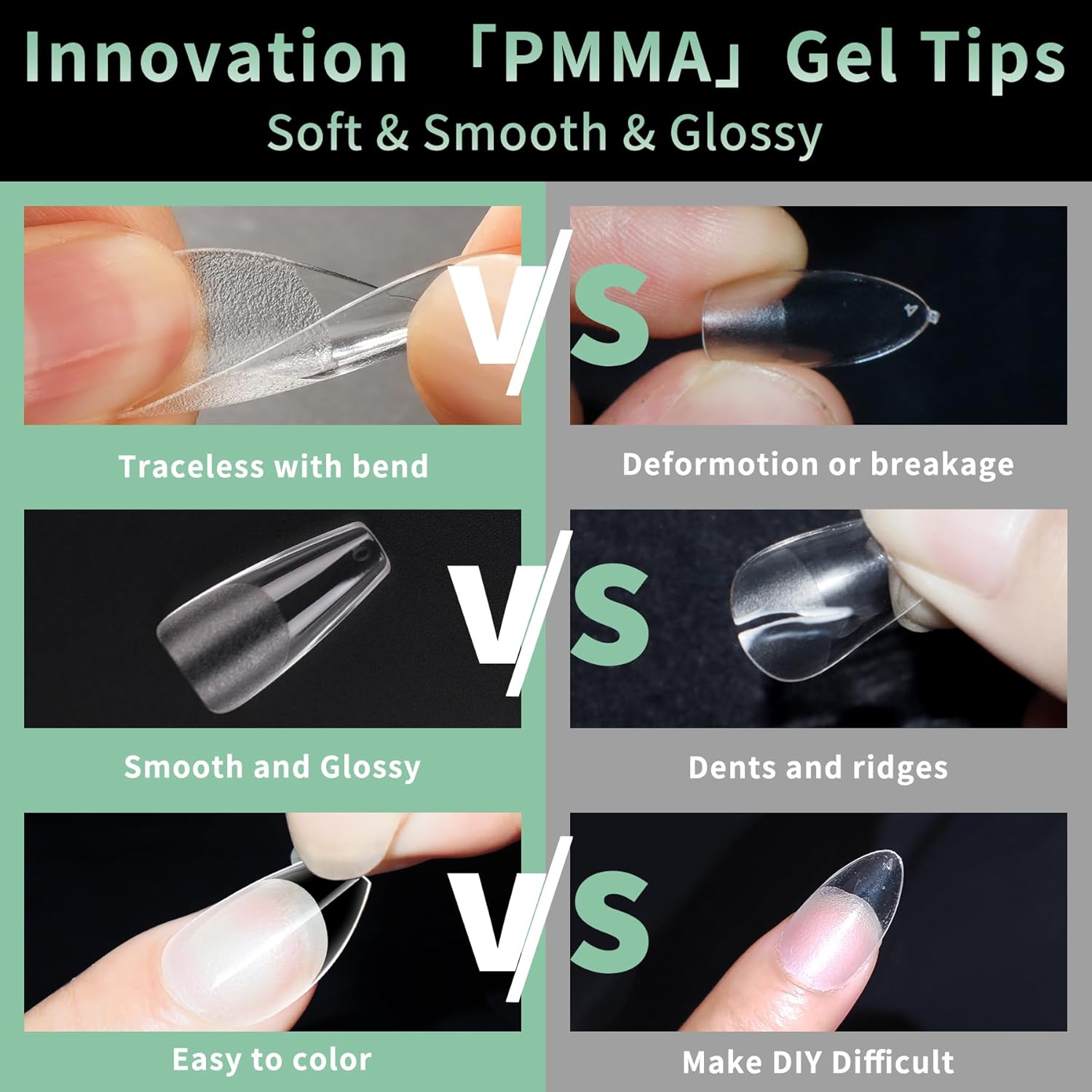 - No Trace Gel Nail Tips Soft: Crafted from gelly soft material gel, these fake nails leave no trace even when bent. Their bright clarity allows for easy pressing, trimming, and painting, helping you create your ideal nail shape effortlessly. Perfect for a true DIY manicure.