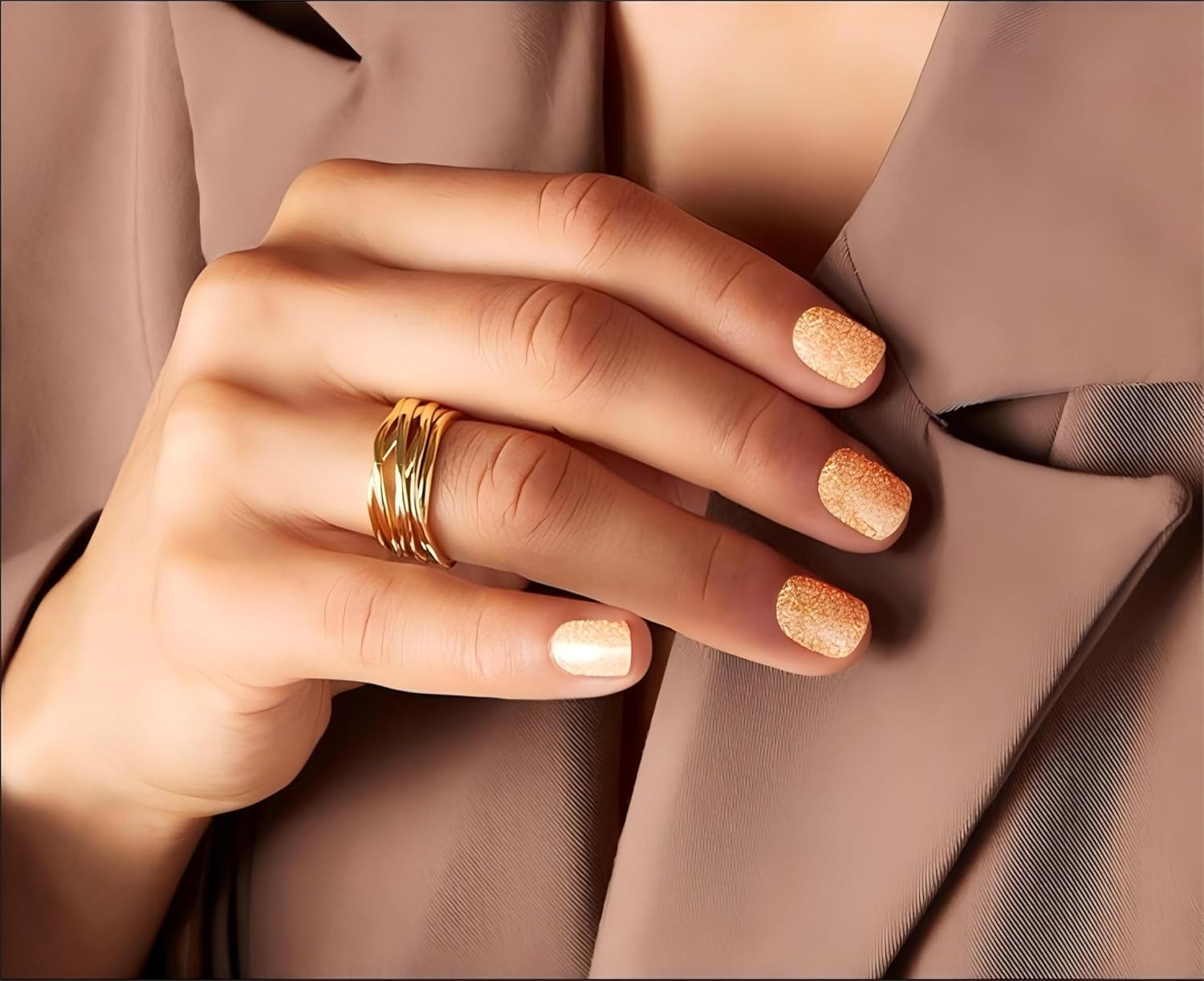 Gloss Nail Strips|Uv Free|22 Pcs,Gel Nail Stickers|Long Lasting Two Weeks and Easy to Apply&Remove|Golden Spot 1