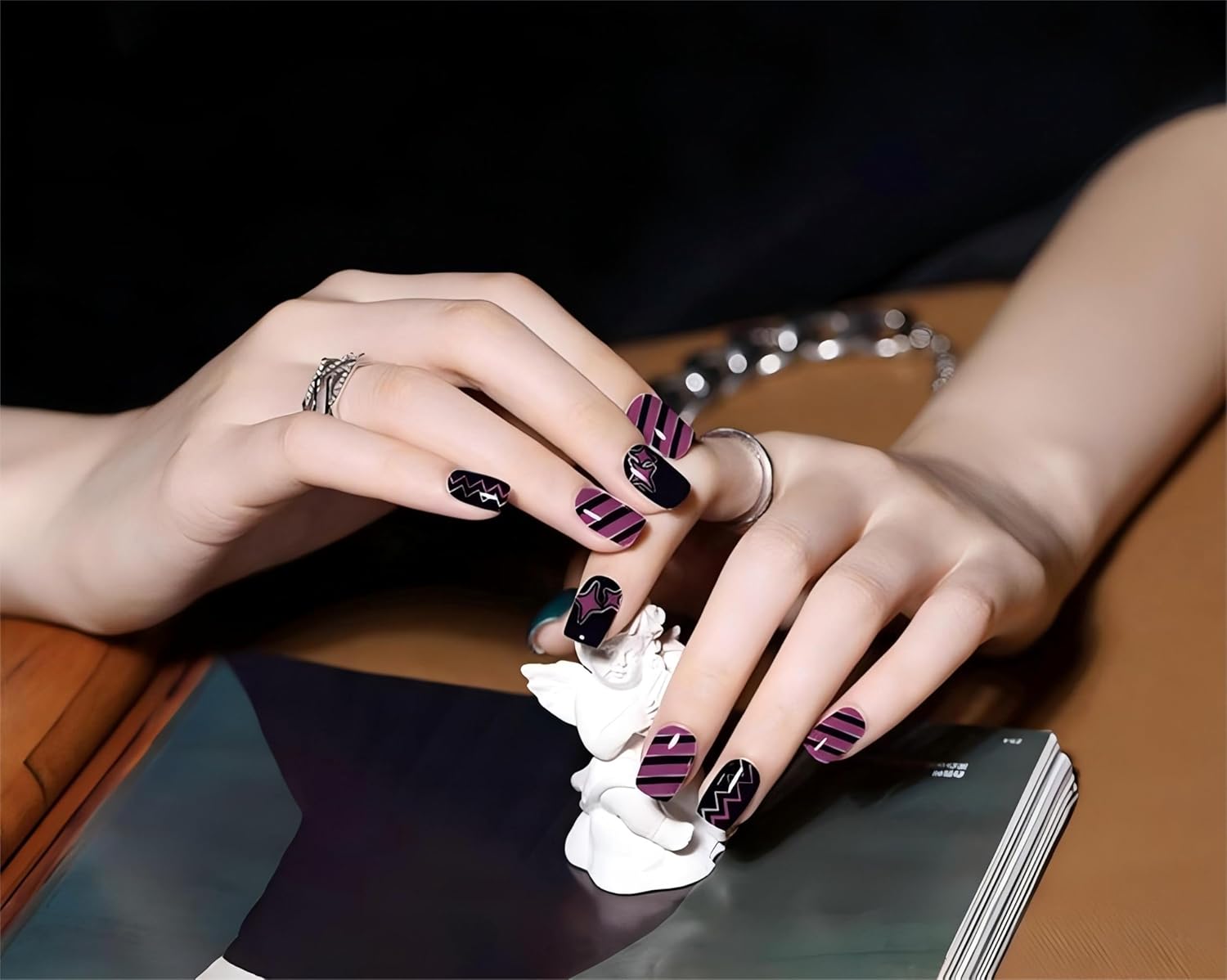 Gloss Nail Strips|Uv Free|22 Pcs,Gel Nail Stickers|Long Lasting Two Weeks and Easy to Apply&Remove|Black Purple Pop