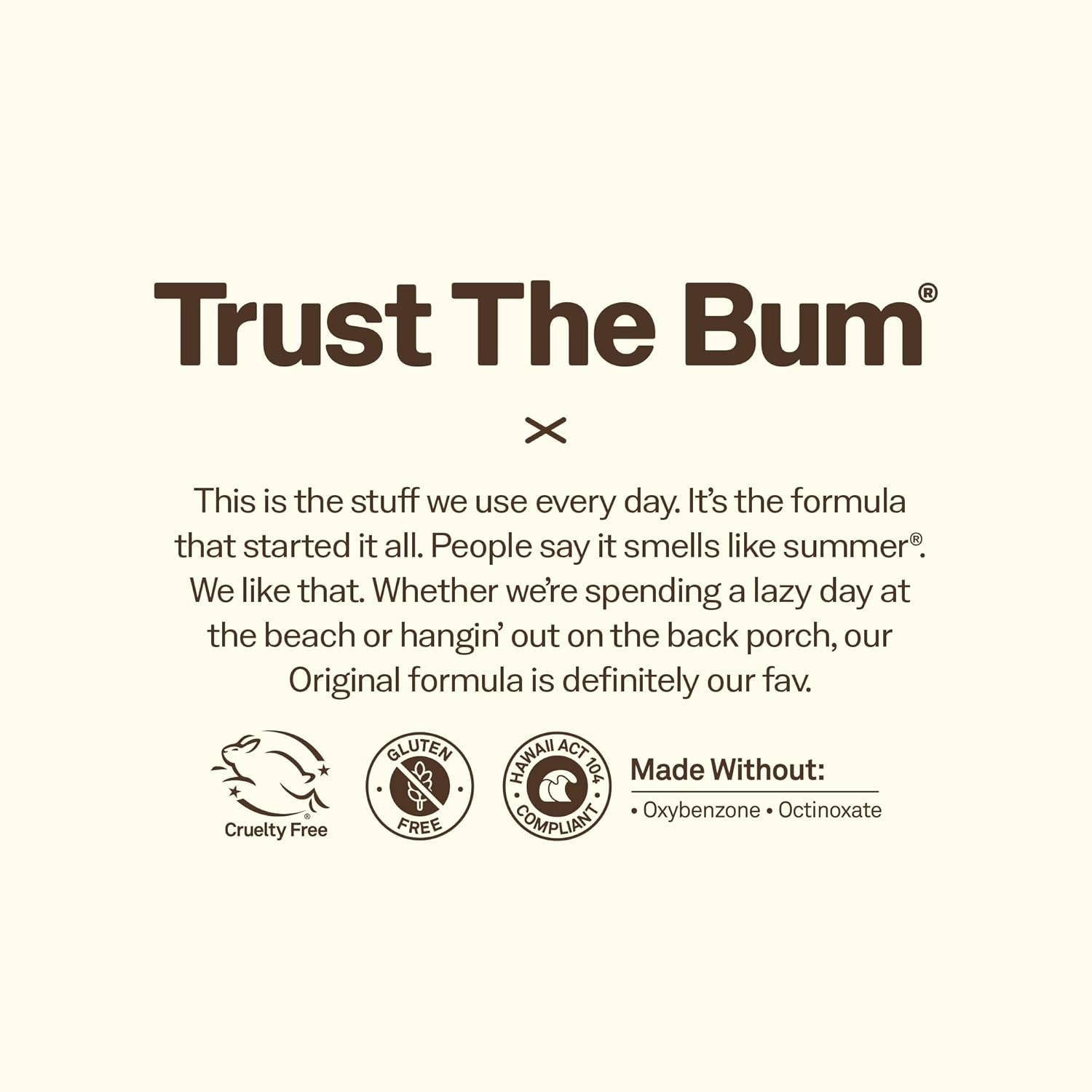 - TRUST THE BUM. What does that mean? It means trust us, the ones who live on the beach and need products that work on the most intense days in the sun. The simple truth is, when you make products to protect the ones you love, you make โem better.