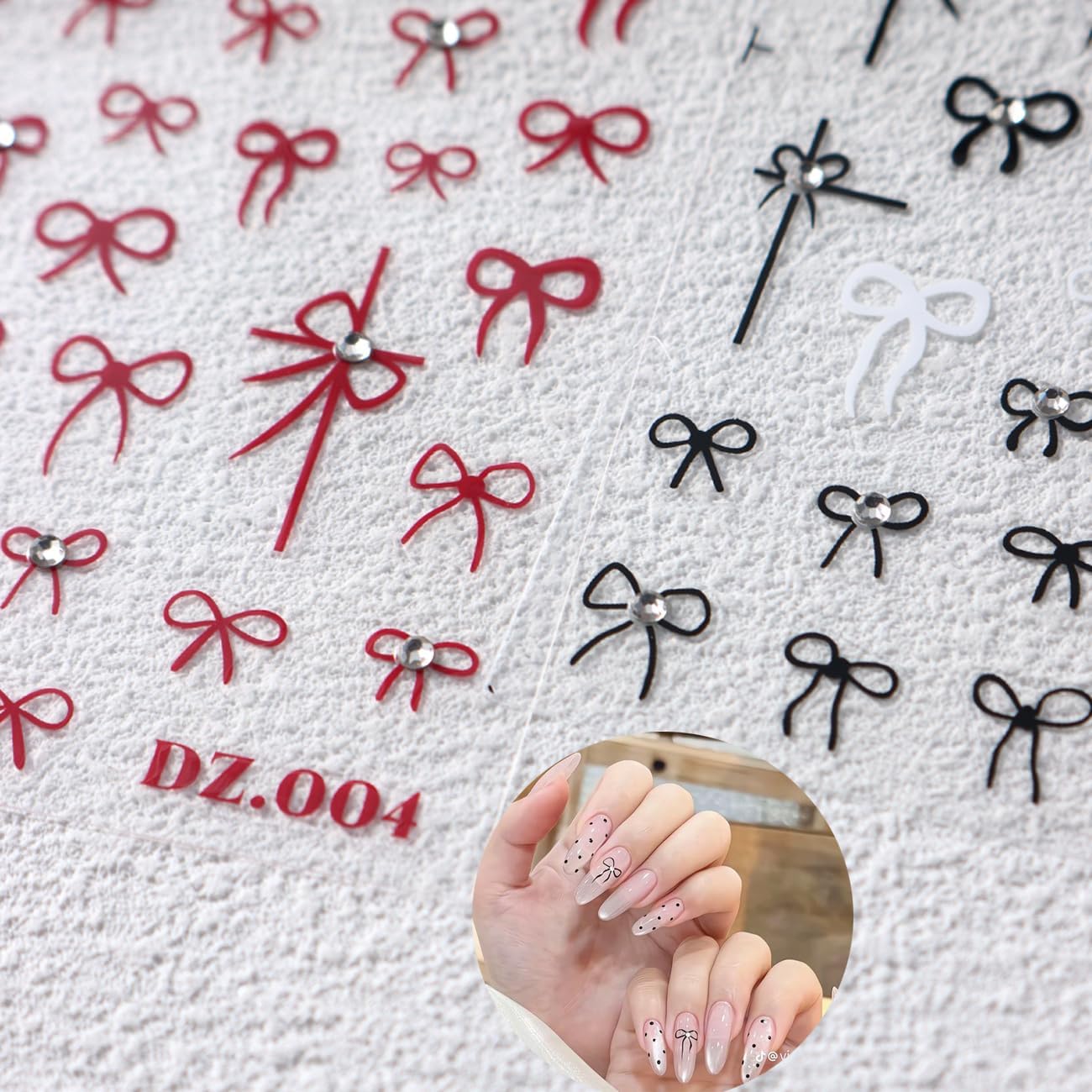 - Perfect Nail Sticker Set: 4 sheets bows nail art stickers, Exquisite nail design, are full of sensuality and elegance, Various charming patterns bring you a different mood, perfect for your nails.