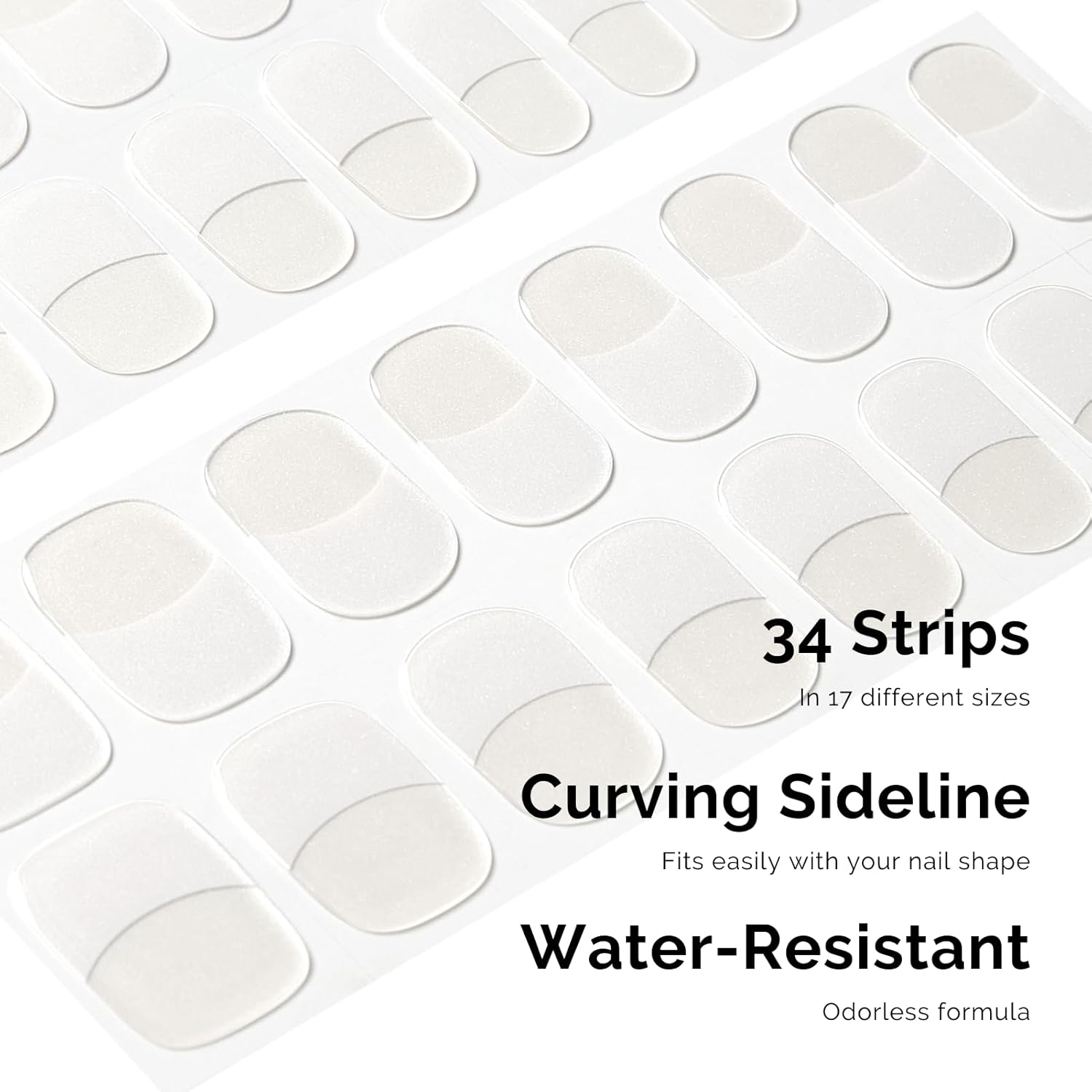 Semi Cured Gel Nail Strips - NAILOG 34 Pcs French Clear Gel Nail Stickers Extra Long Nail Wraps with Glossy Gel Finishing for Spring Summer, Moonlit Tips