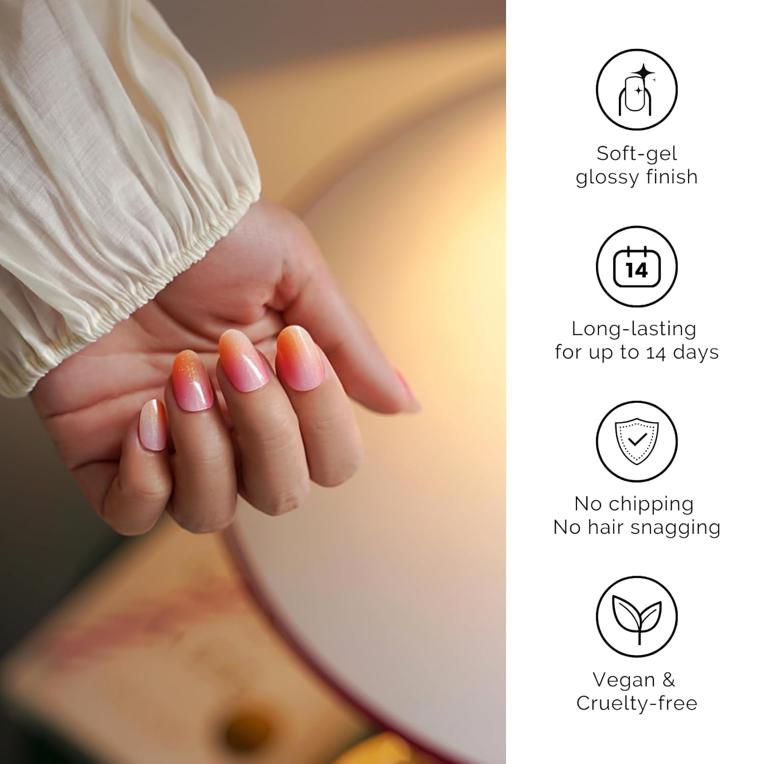 - â€SALON QULITY: Made of real nail polish 60% precured, soft to fit all nail shapes - Nailog semi cured gel nail strips with waterproof top gel last up to 2 weeks once cured with a UV lamp. Our gel nails are also extremely lightweight so they do feel like your own nails!