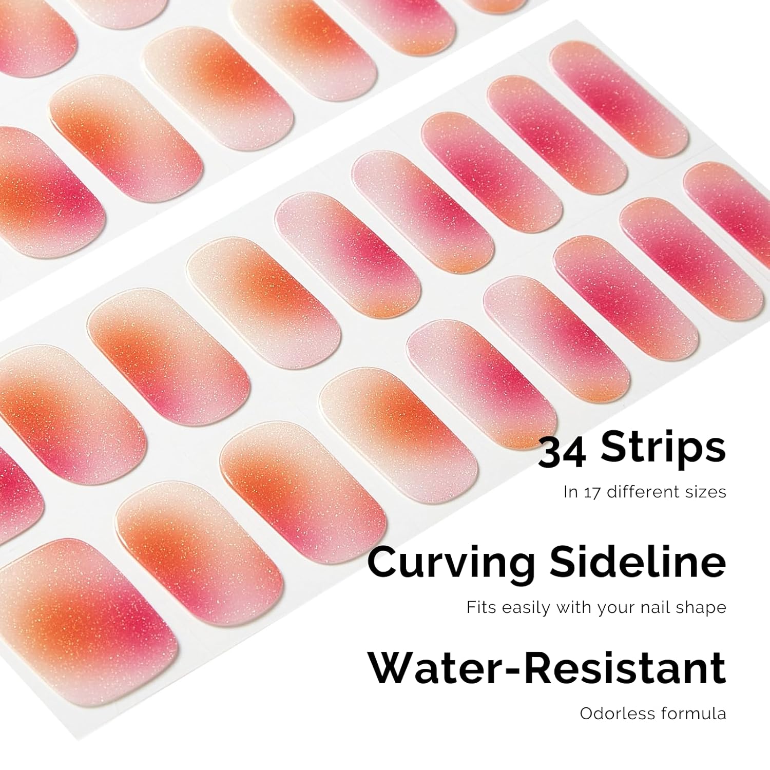 - â€WHAT YOU GET: 34 Pieces gel polish strips in 17 sizes, 2 prep pads, 1 nail file, and 1 wooden stick. -Our semi cured nail strips are free from toxic, animal-derived, or harmful ingredients and are vegan, safe to use, and odorless. A perfect cost & time-saving DIY manicure kit.