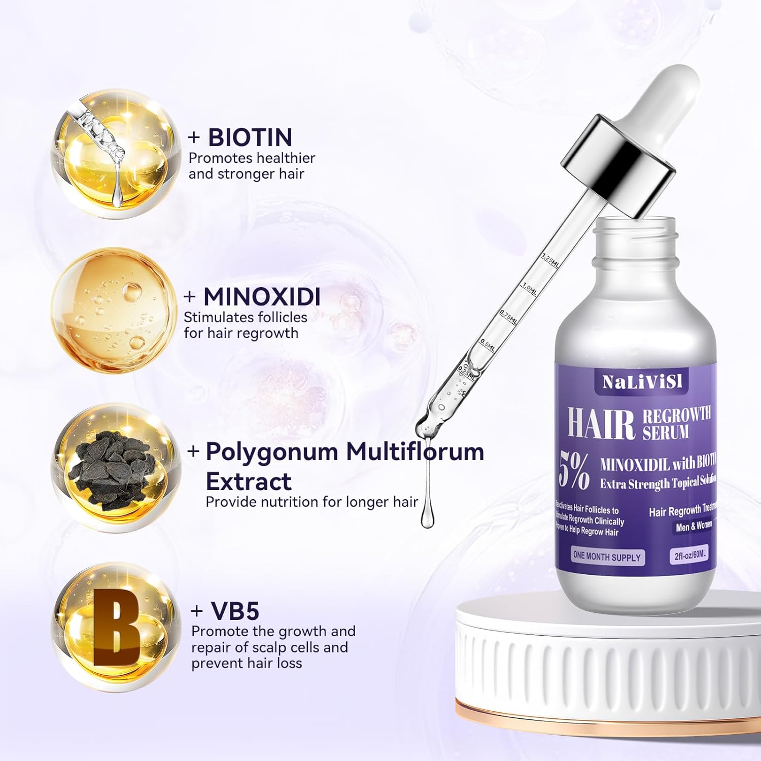 - 【MINOXIDIL for Men and Women】- NaLiViSI Minoxidil Hair Growth Serum is suitable for all men and women, regardless of ethnicity, hair type, or style, be it straight, fine, wavy, coarse, or curly.