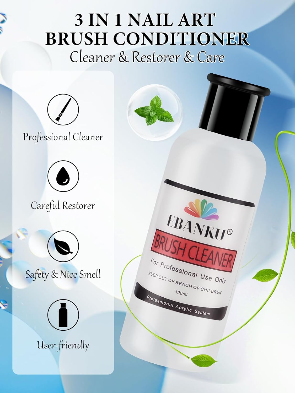 - Nail Brush Cleaner & Conditioner: EBANKU brand new nail cleaner for breaking in a new brush, using as acrylic nail brush cleaner, gel nail brush cleaner and nail art brush cleaner, etc. You will remove all dirt, glitter, gel or acrylic residues.and keep you nail brush soft and good as new, extends the life of your brushes significantly.