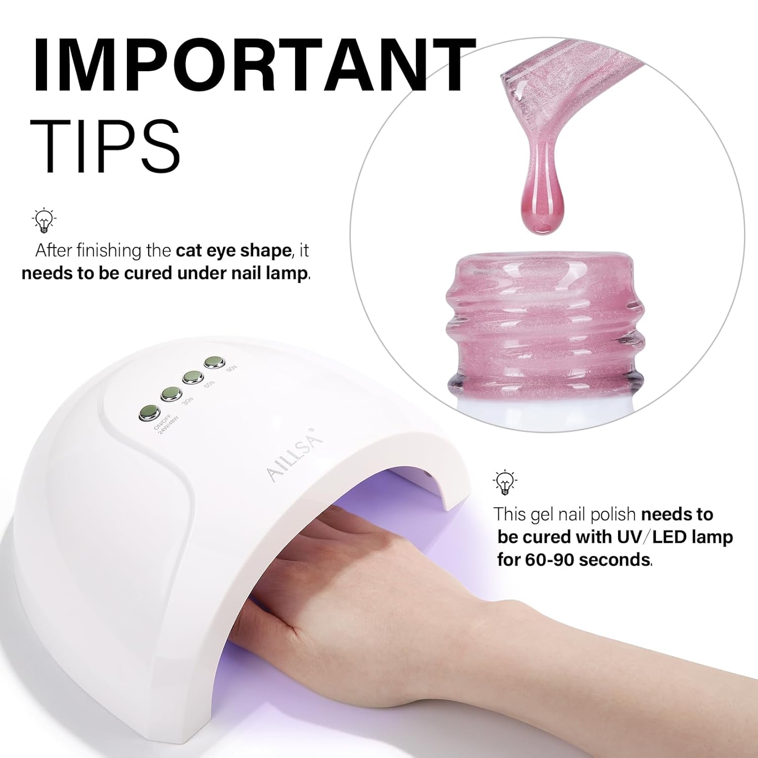 - Crystal Sparkle Effect: AILLSA cat eye gel polish creates mirror-like sparkle, crystal-clear nails, or vibrant cat-eye effects. Use it alone or pair it with any base color for stunning crystal glass nail designs featuring translucent tones and a dazzling finish.