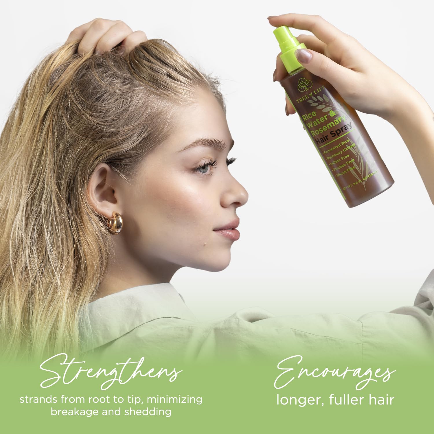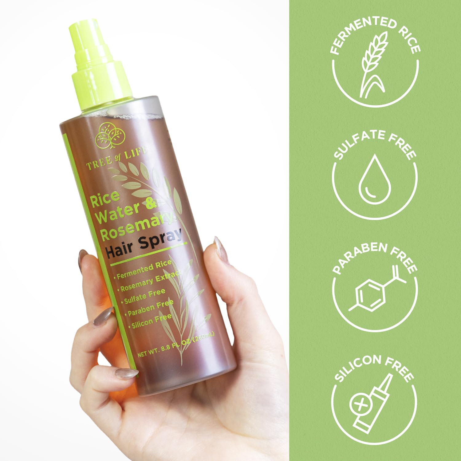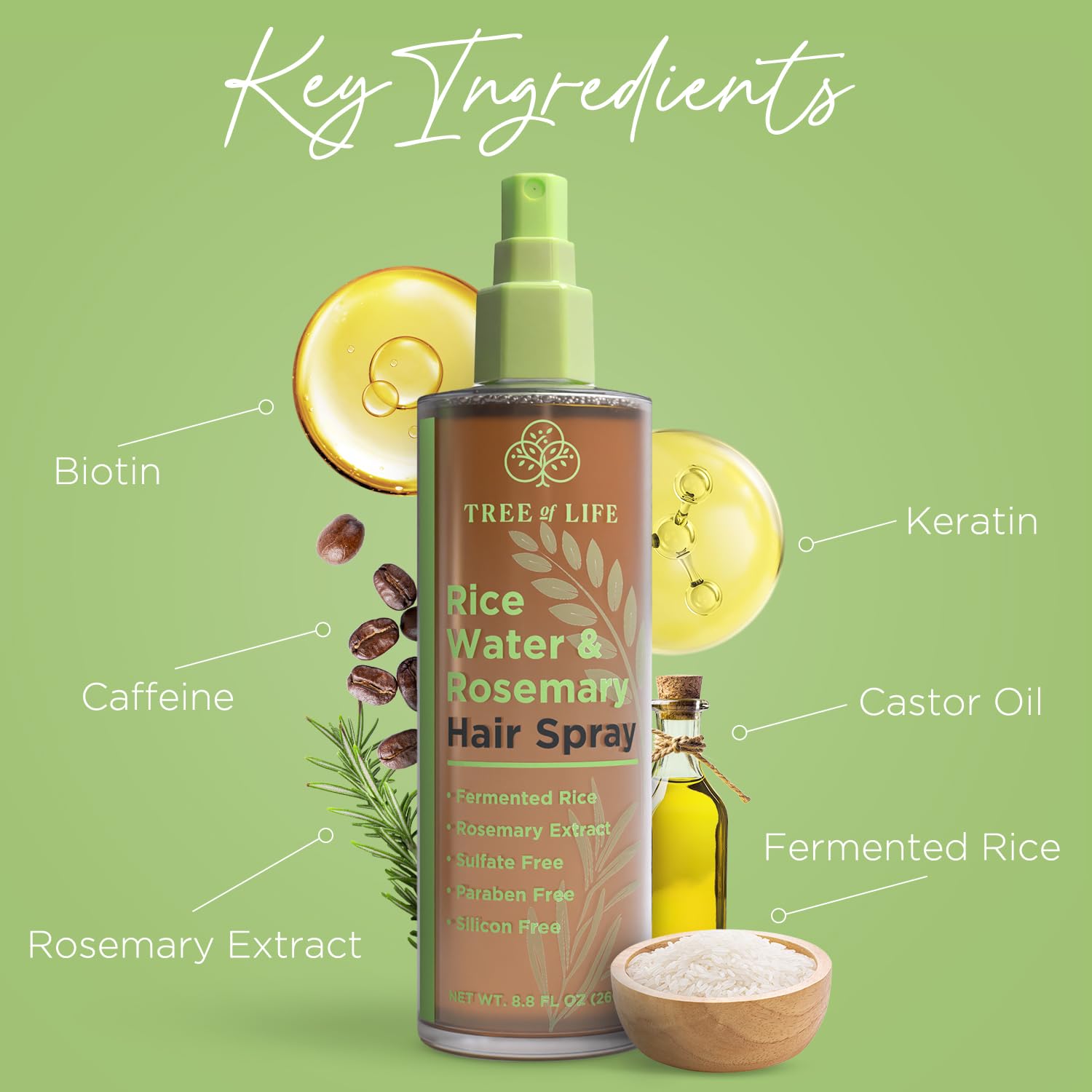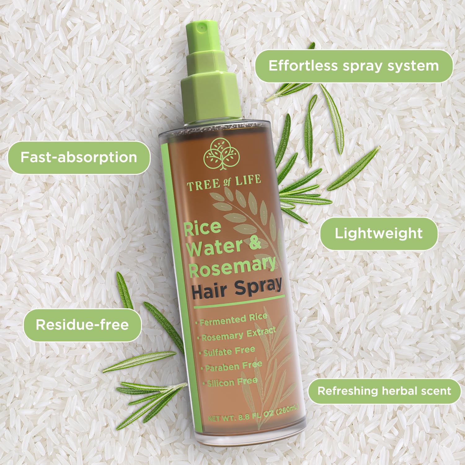 Tree of Life Beauty Rice Water Hair Spray Rosemary Water Spray for Hair Growth (8.8 fl oz) - Hair Thickening Fermented Rice, Caffeine, Rosemary Extract, Biotin, Keratin and Castor Oil Scalp Care