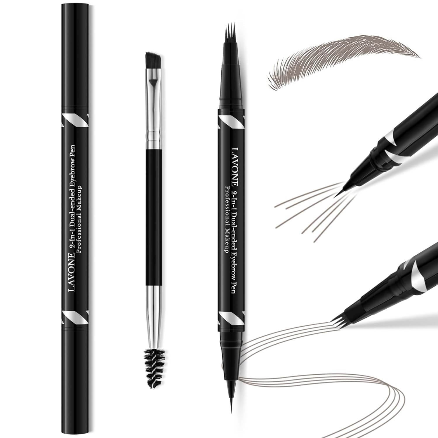 - 【Brow Pen】: LAVONE innovative 2-in-1 dual-ended eyebrow pen design with 4 tip microblading eyebrow pencil fill and blend color into eyebrows,draw 3D natural real hair, and ultra-precise pen makes realistic hair-like strokes & fill in sparse areas. It glides on easily and smooth to build natural looking, flawless, symmetrical and fuller brows with up to 24HR wear for brows. It’s long-lasting, smudge-proof, and waterproof.