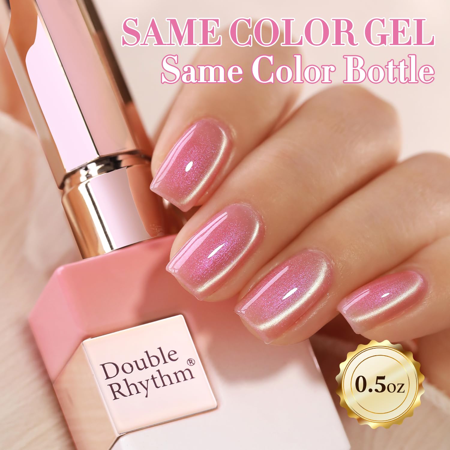 Double Rhythm 0.5 Oz Cat Eye Gel Polish with Magnet Same Color Same Bottle Holographic Glitter Shimmer Translucent Color Salon 15 ML Magnetic Nail Art (Mermaid Pink-MC1175)