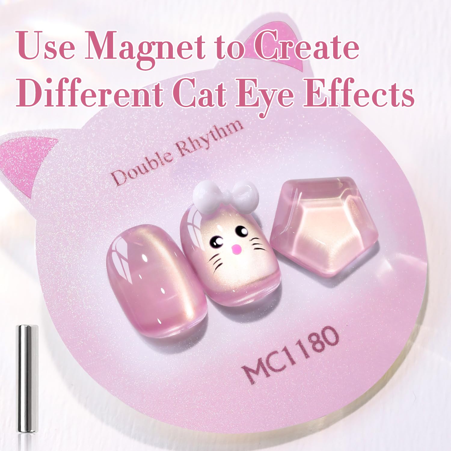 - Same Color Same Bollte Cat Eye Gel Nail Polish : Double Rhythm cat eye gel nail polish kit includes 1 color 15ml / 0.5 fl.oz gel nail polish. The cat eye gel can be combined with different bacse colors arbitrarily, you can get different colors nail art.You can use different base color to creat different sytles.