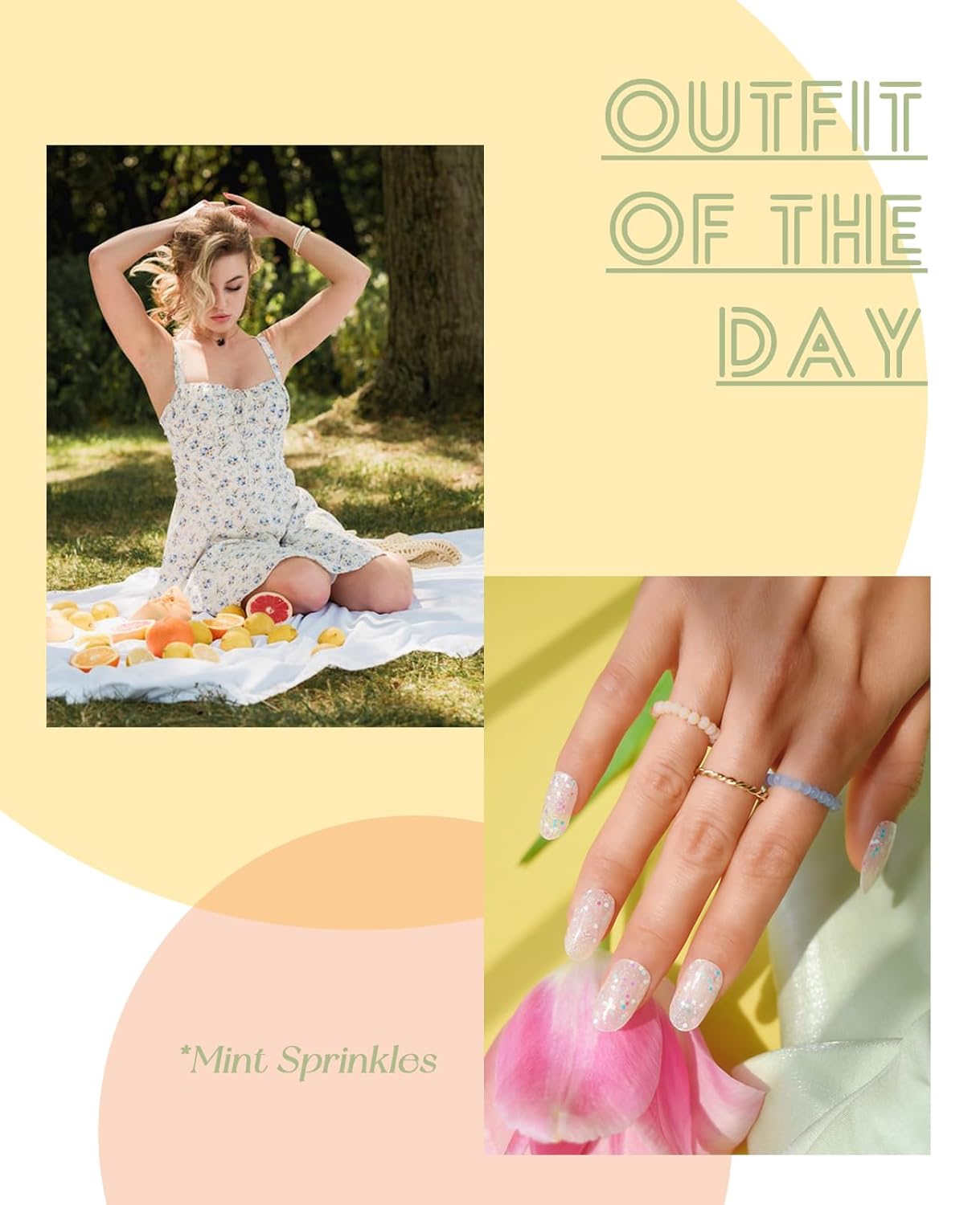 Semi Cured Gel Nail Strips, 20 pcs Nail Wraps, Glaze Stickers, Salon Quality French Manicure, Full Decal Gel Polish Strips, Long Lasting SCG, Easy on, UV Required (Mint Sprinkles)