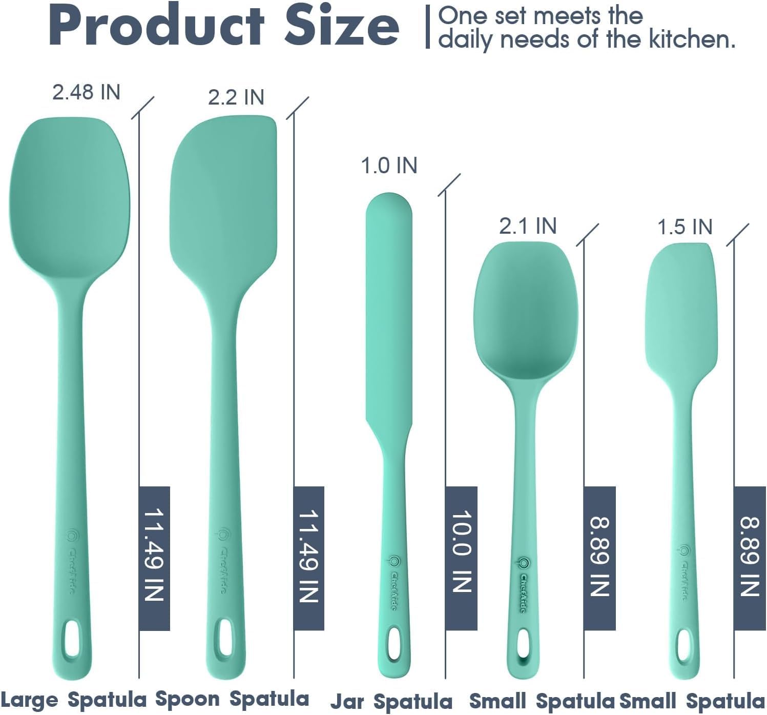 5 Pieces Silicone Spatula Set, Food Grade Rubber Spatula, Upgrade Strong Handle with Ergonomic Grip, Heat Resistant Up to 600°F for Nonstick Cookware, Cooking Mint