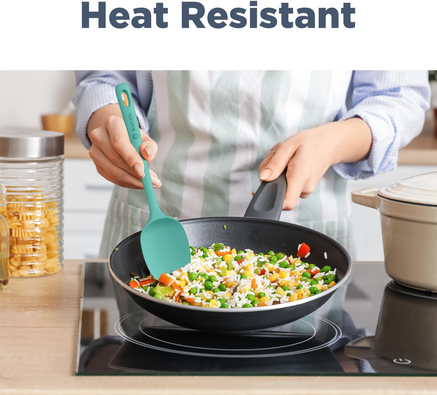 - Premium 100% Food Grade Silicone: The silicone spatula set is made of healthy and friendly material, resistant to high temperatures up to 600 °F. No more melting, cracking and worrying