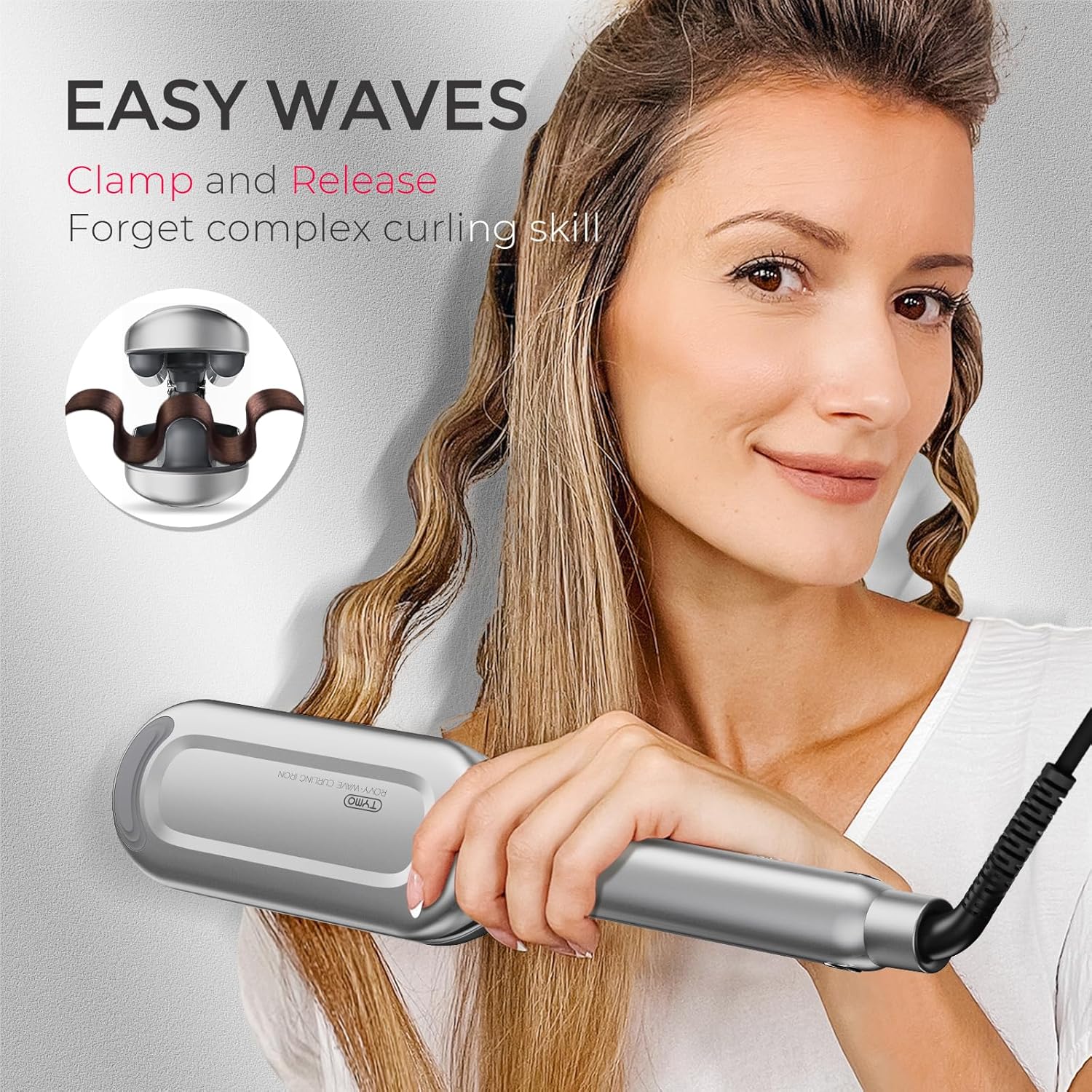 - EASY CLAMP, INSTANT CURLS: Say goodbye to hours of practice and hello to stunning daily beachy waves with just one clamp. Your hair transformation journey begins now with our curling iron!