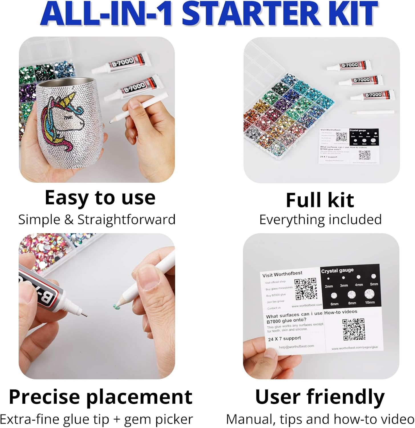 - Easy to Use -- This kit is designed to be straightforward, and versatile for various crafting projects. The manual is user-friendly and beneficial for both novice and experienced crafters. The complete and durable tools are suitable for precisely applying rhinestones to create intricate designs, with no additional tools required. Rhinestones are easy to apply and remove. The sturdy container with 15 grids keeps all rhinestones organized by size and color, making them easy to store and access