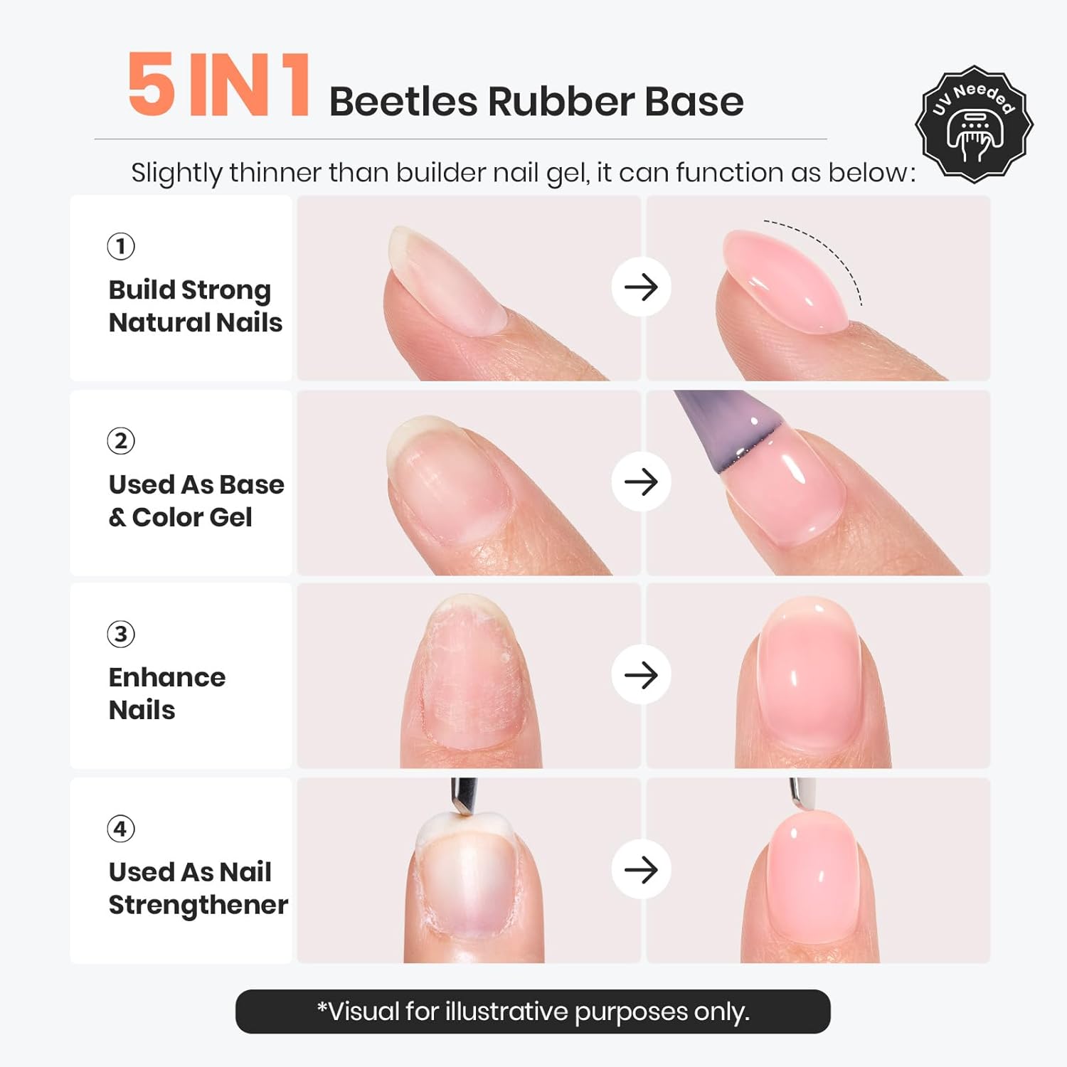 - 【Stronger Nails, Less Breakage】:Stop weak nails from splitting or peeling. This rubber base gel strengthens natural nails with an upgraded formula— perfect for brittle, bendy, or damaged nails.