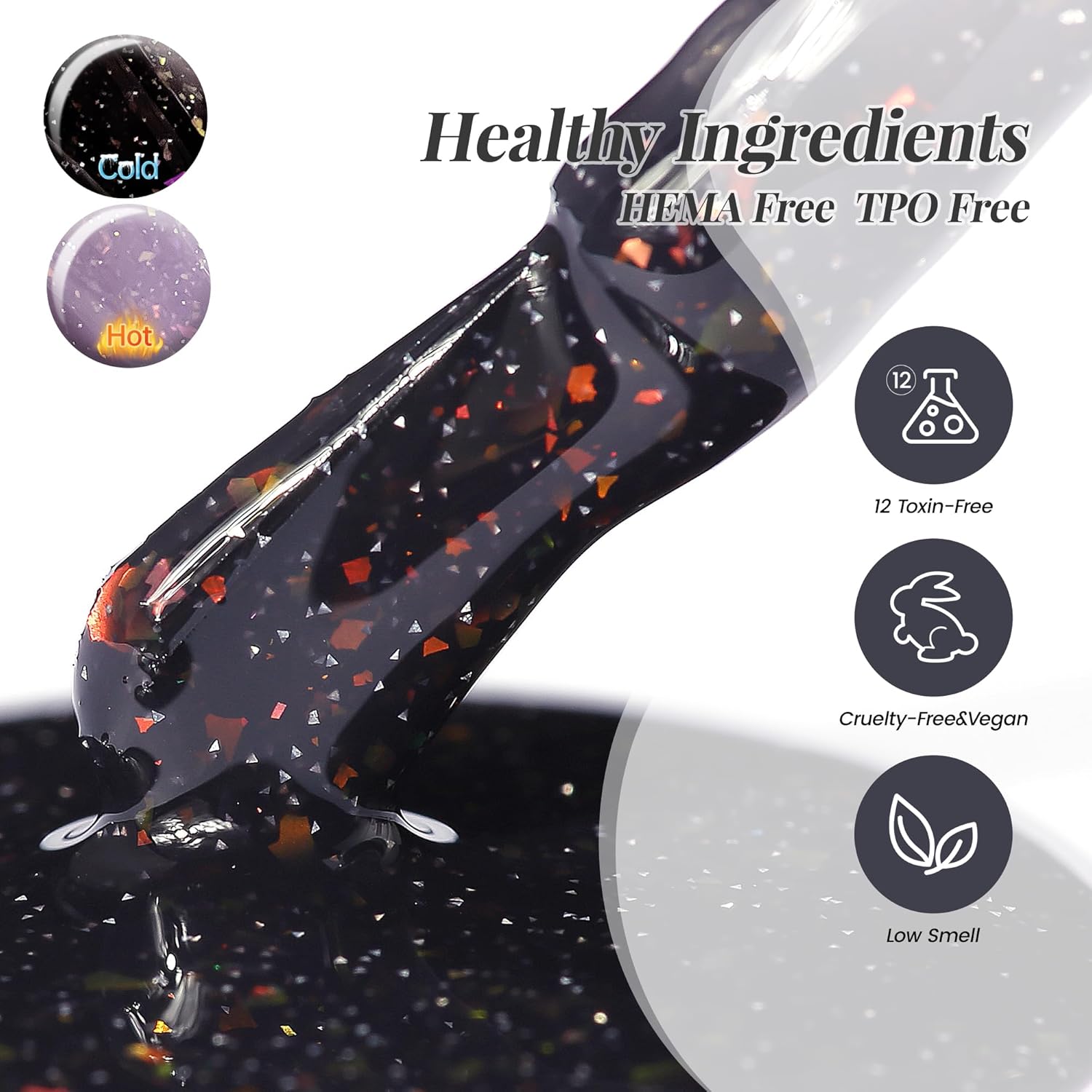 YTD Likomey Color Changing Gel Nail Polish 2 Pcs Set,15ml Grayish Purple to Black Pure Color and Brocade Glitter Kit,Fall Winter Thermal Ombre Change Colors Manicure UV Varnish,2 Pcs 15ml,WB2-05