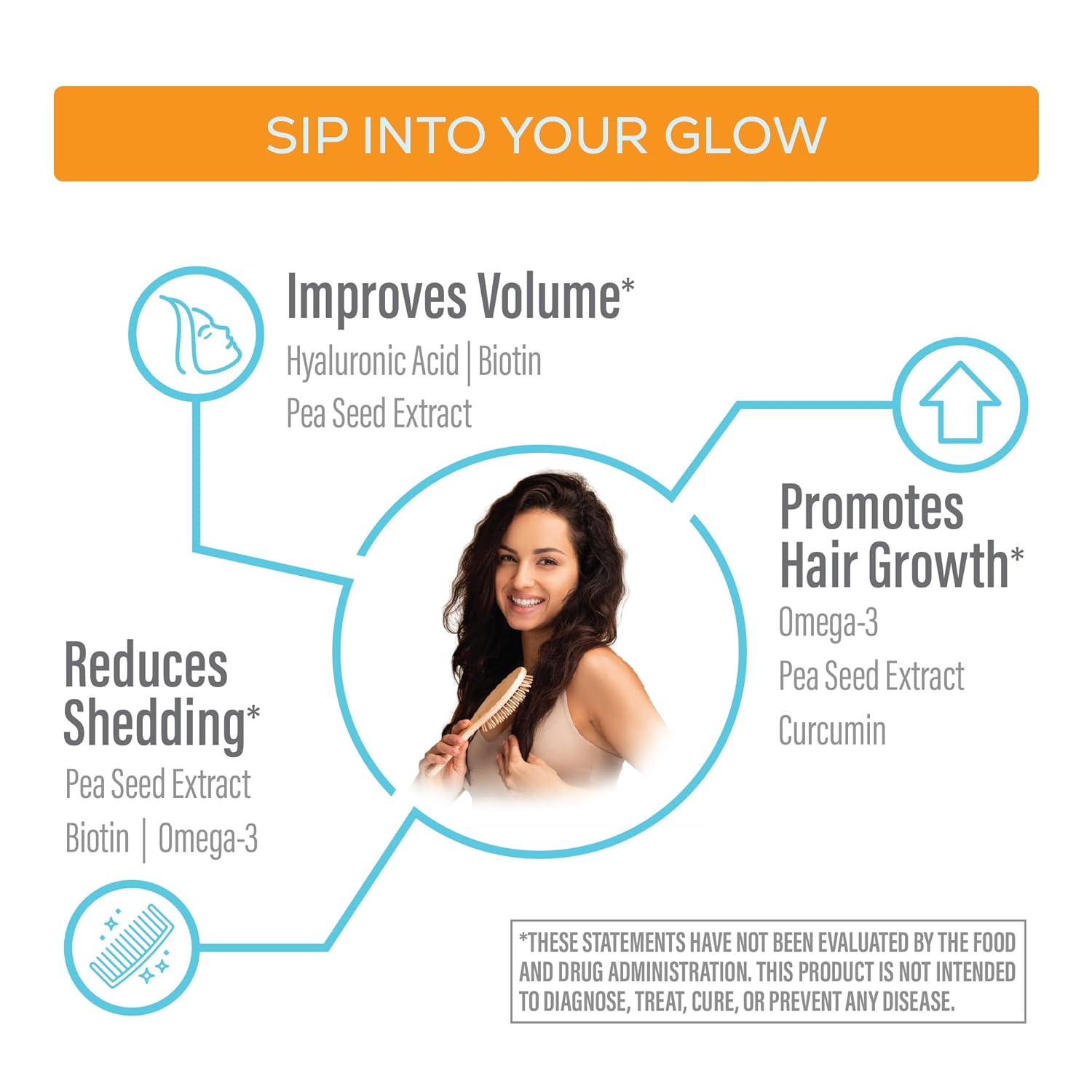 - Nourish and Strengthen from Within: Fuel your hairโs happiness with our Liquid Hair Growth Solution, featuring Biotin, Omega-3 ALA, Curcumin, Hyaluronic Acid, and Mixed Tocopherols to nourish from root to tip for stronger, fuller, shinier locks.