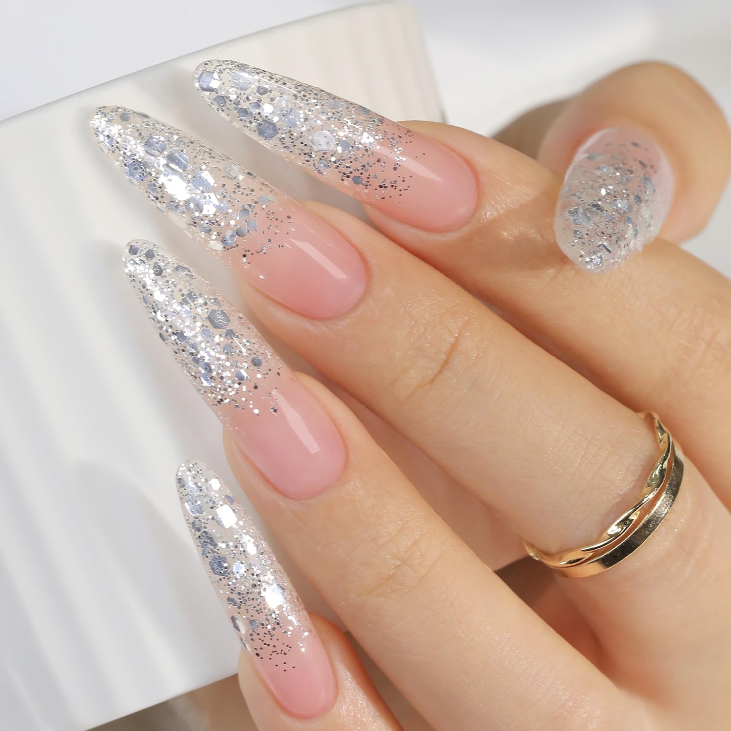 Double Rhythm 0.5Oz Glitter Gel Polish Shimmer Reflective Color for Nail Art Salon DIY Soak Off 15ml Nail Lamp Gel Polish at Home (Silver Sequin-B1017)