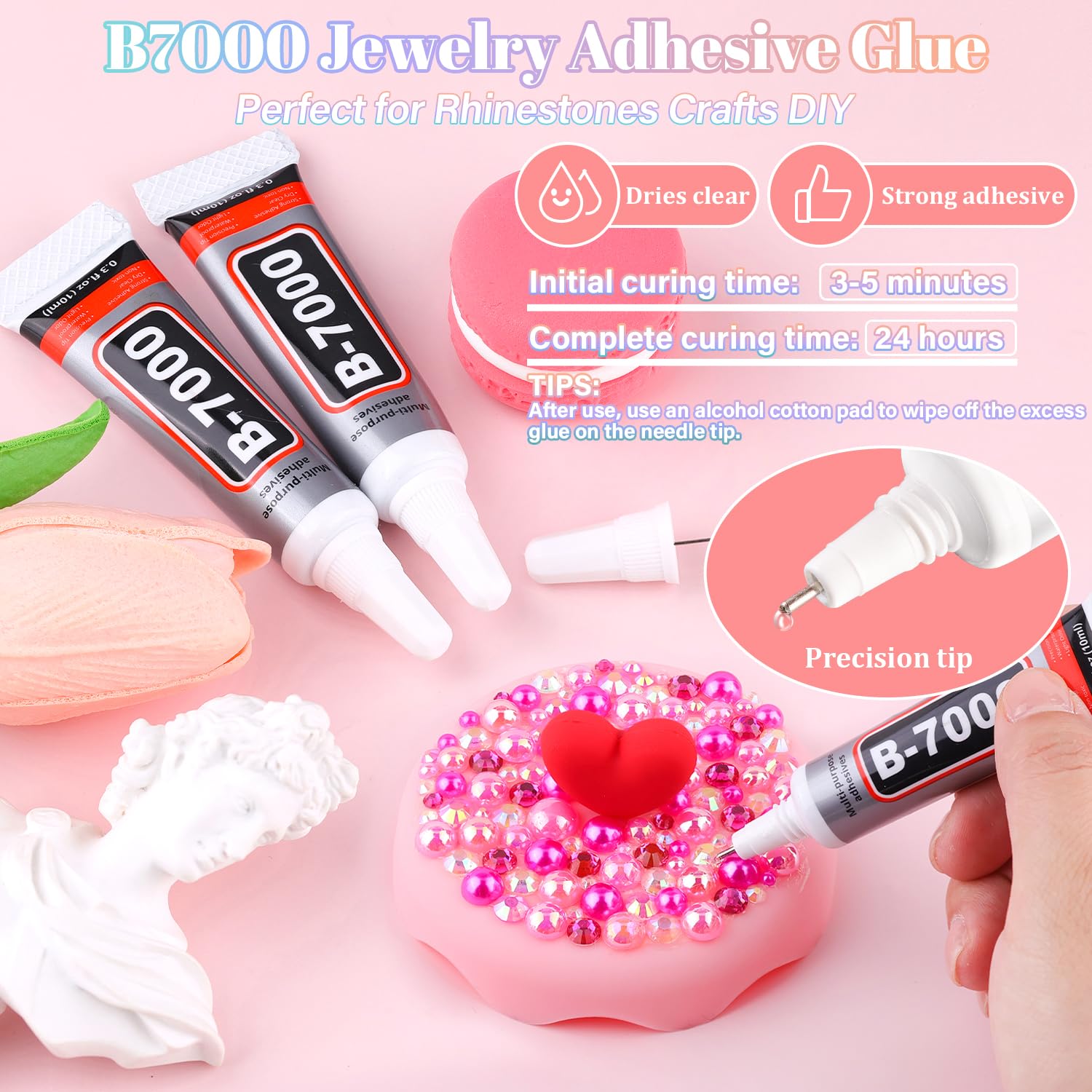 - WHAT YOU WILL RECEIVE:1 box of 9000pcs flat pearls and rhinestones to meet your different needs. Besides, this set of half pearls and gems comes with a tweezer, a picker pencil and 3pcs 10ml B7000 jewelry adhesive glue, which helps you spare no effort to pick up the beads and enjoy the fun of DIY.