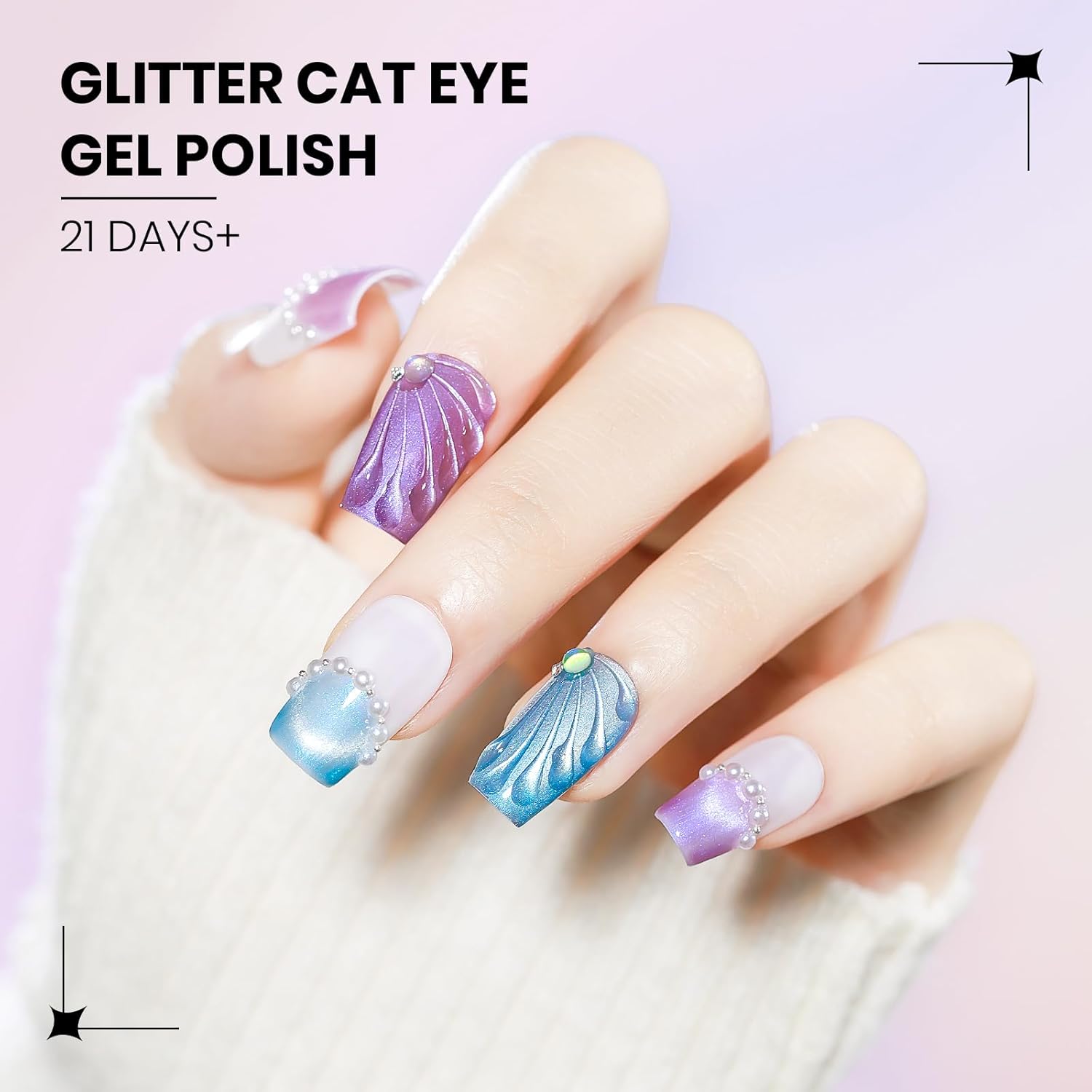 - Pearl Shell Cat Eye Gel Set: This latest cat eye gel nail polish set contains 12 colors of 7ml magnetic nail polish and 1* magnetic stick. All in 1 kit, save your money and time on going to the nail salon