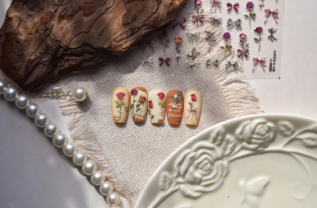 - Exquisite Design: The rose nail art stickers adopt a unique three-dimensional bump effect to make patterns more realistic.You could create you own style using these spring summer nail stickers
