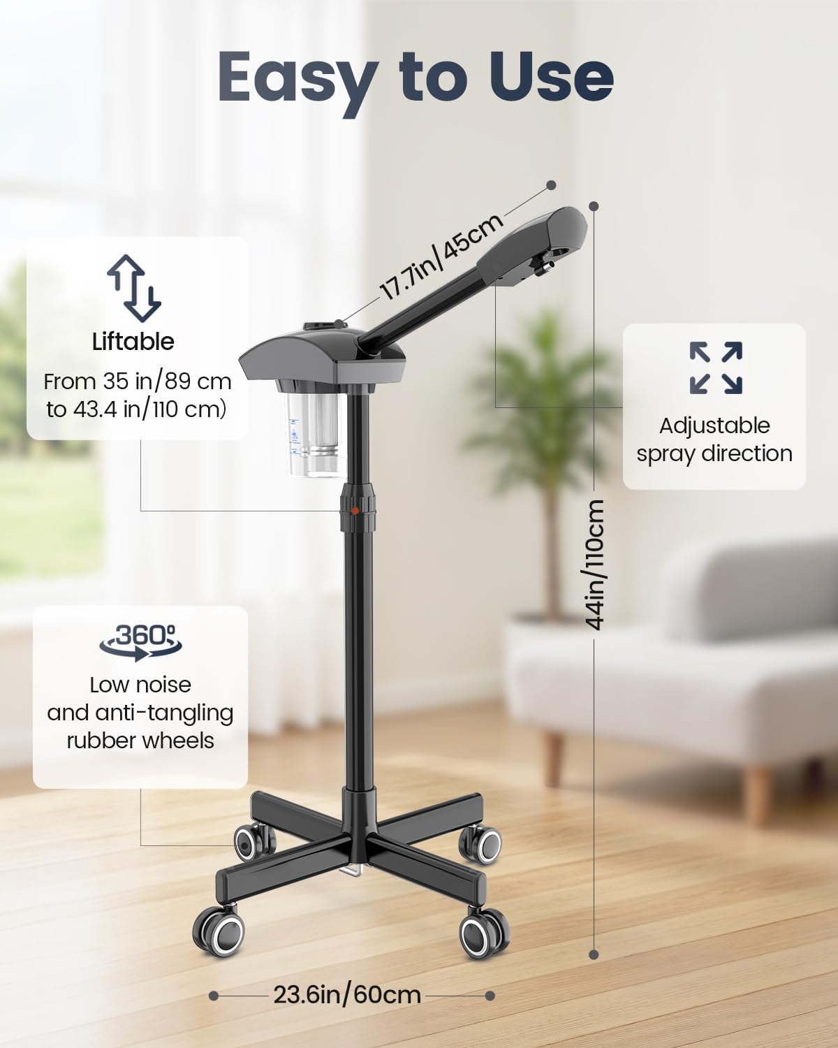 - 🔄 360° Full Coverage Steam & Large Capacity: Unrivaled versatility! The unique 360° rotatable nozzle directs steam precisely to your face, neck, or décolletage. A generous 400ml water tank ensures extended steaming without constant refills, providing efficient and convenient deep cleansing & hydration. An essential beauty tool for esthetician students, makeup artists, and home skincare enthusiasts.