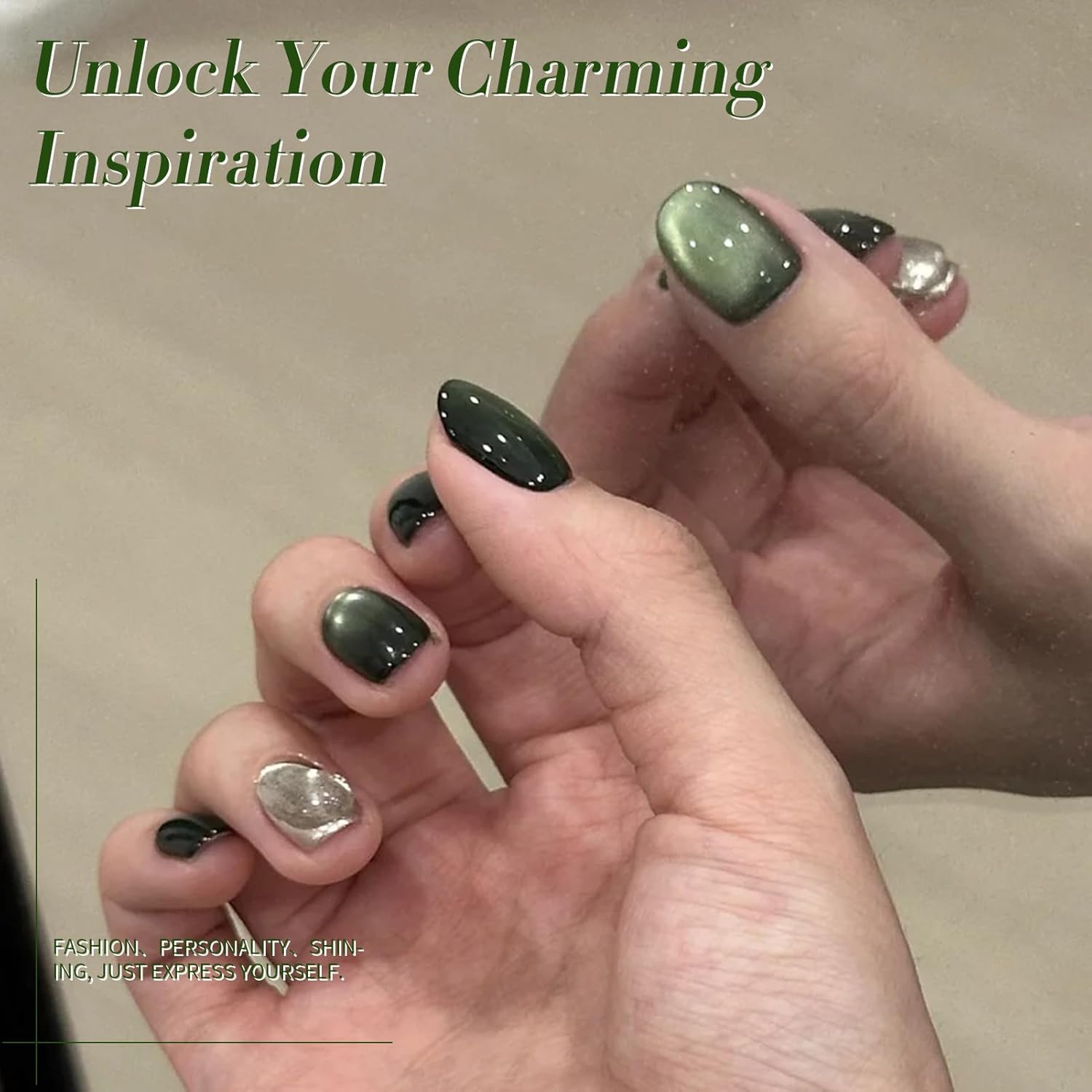BORN PRETTY Cat Magnetic Eye Gel Nail Polish,Dark Emerald Jelly Glass Magnetic Gel Polish,Green Glitter Soak Off Nail Art Salon Manicure Home Gift 15ml