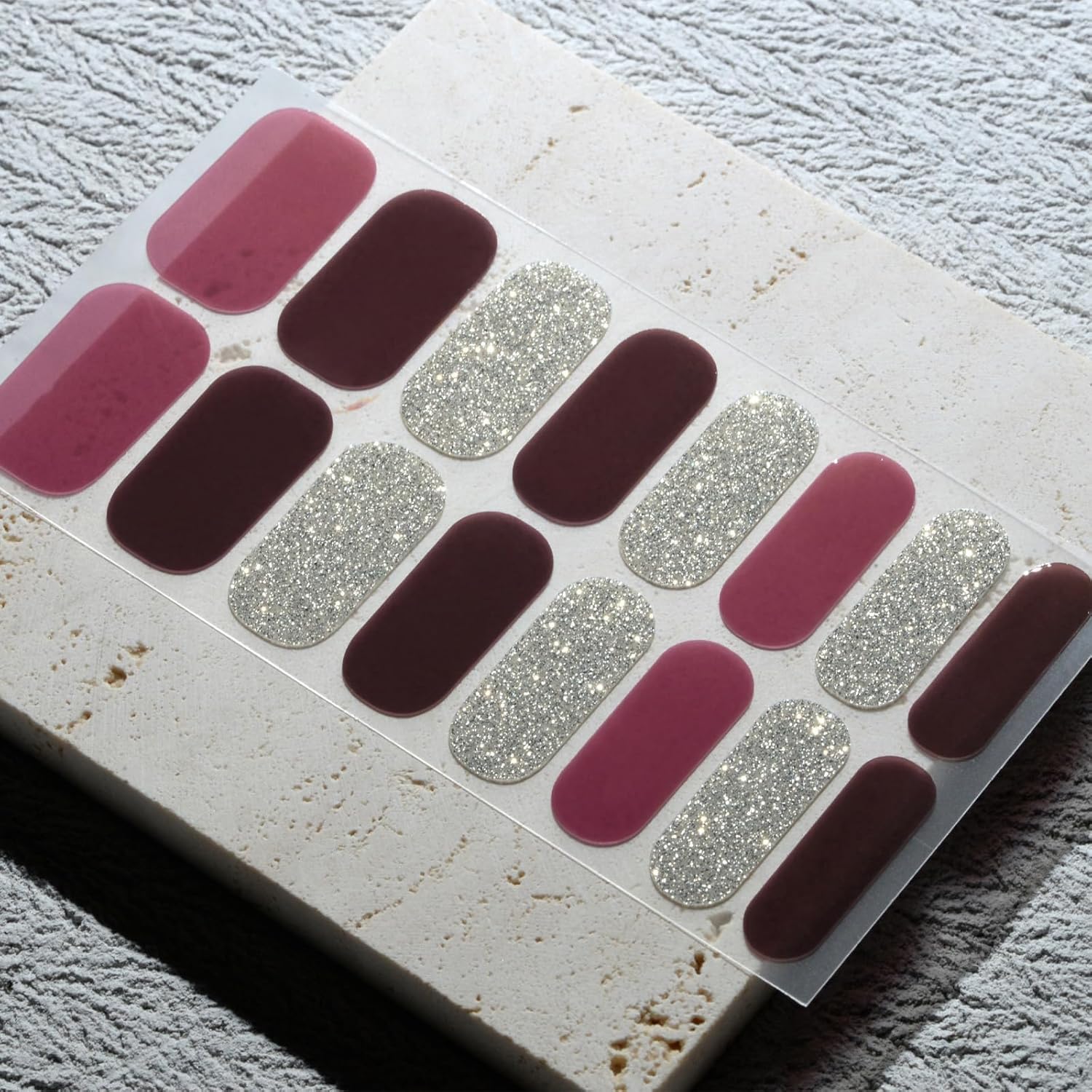 Nail Polish Strips, 32PCS Salon Quality Wraps, Long Lasting Gel Nail Stickers for Women Easy Apply& Remove (Berry Preserved)