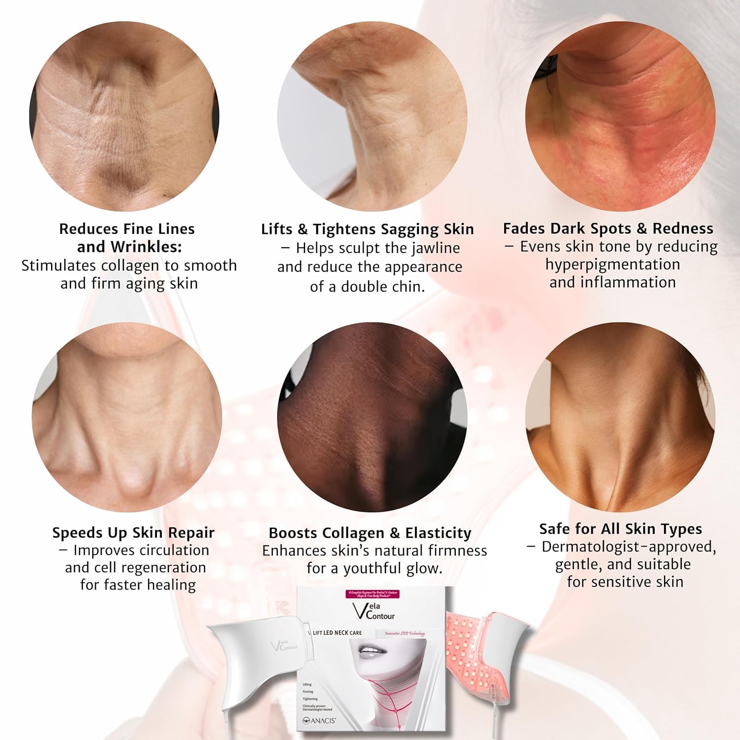 - Clinically Proven Neck Care: Reduce wrinkles, improve skin texture, and target fine lines with ANACIS’s innovative red light neck care mask. Enjoy a relaxing, spa-like care at home while achieving firmer, smoother, and more radiant skin.
