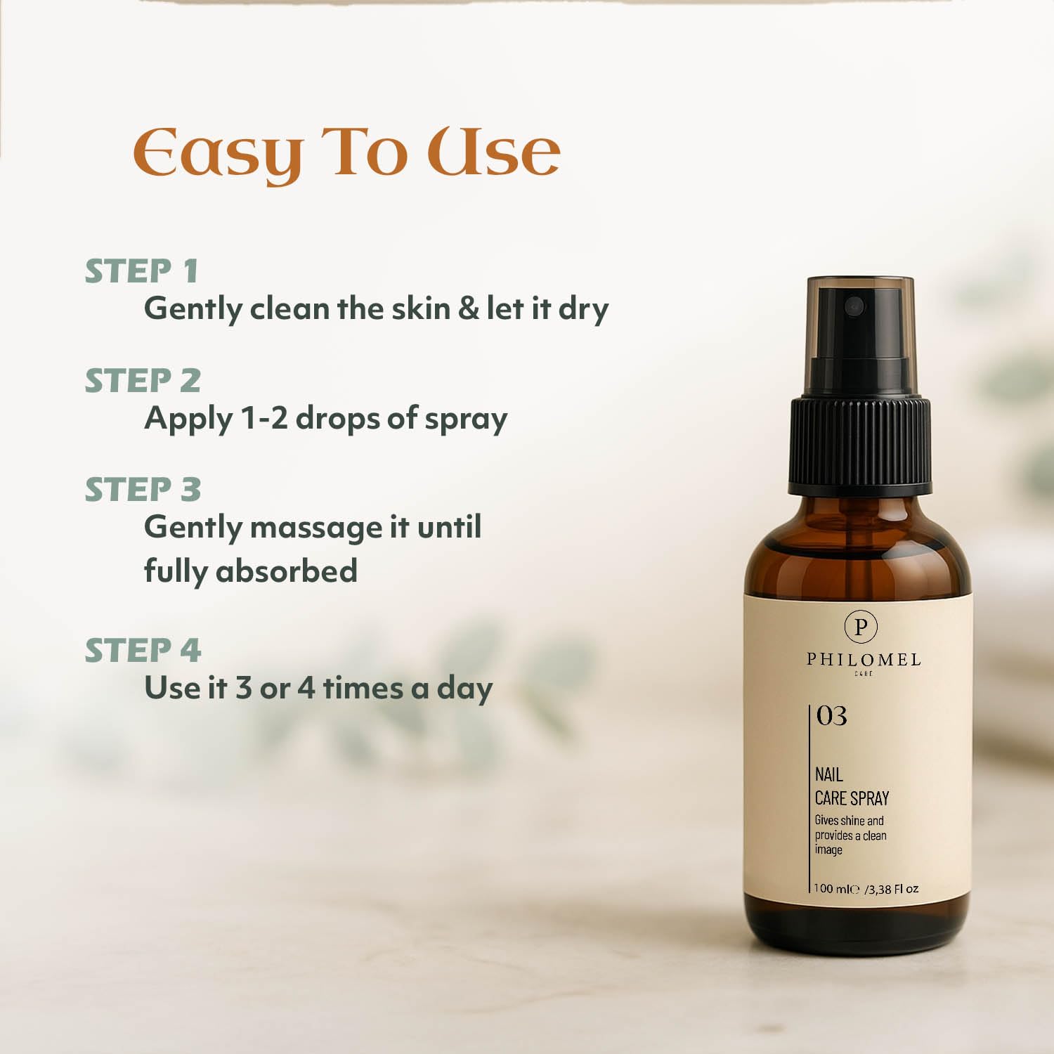 - Nail Repair for Damaged Nails: Philomelcare nail care spray is ideal for weak nails or nail damage, providing a solution that restores strength and appearance. It deeply nourishes the nail beds, promoting faster healing, so you’ll notice healthier, stronger nails with time. Additionally, its intense repair effect fills in cracks and smooths the surface, providing protection from external factors.