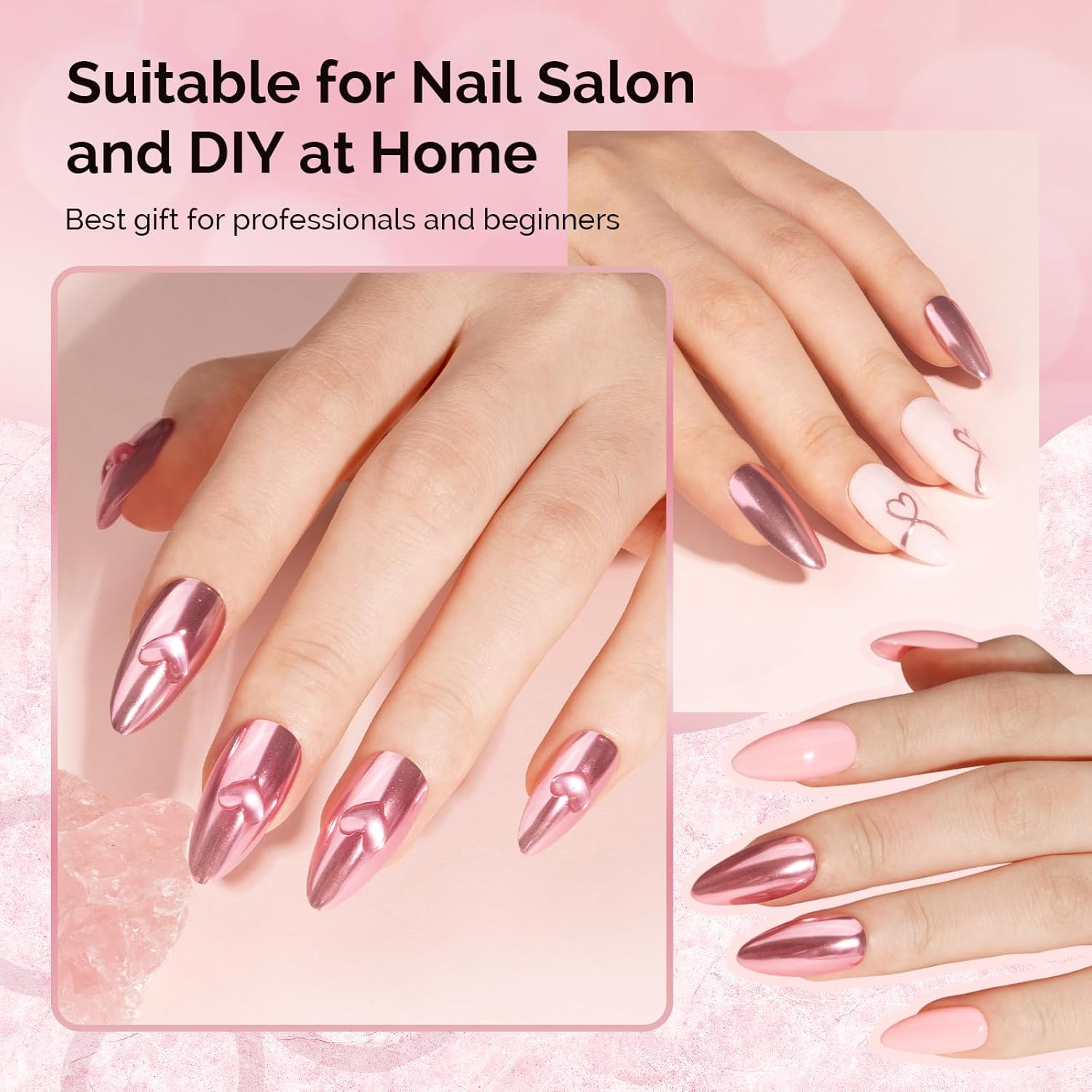 - Wide Range of Applications: Suitable for UV gel nails,acrylic nails,natural nails or false nails.Easy to get a salon grade chrome effect without special techniques.Powder is easy to apply and suitable for beginners