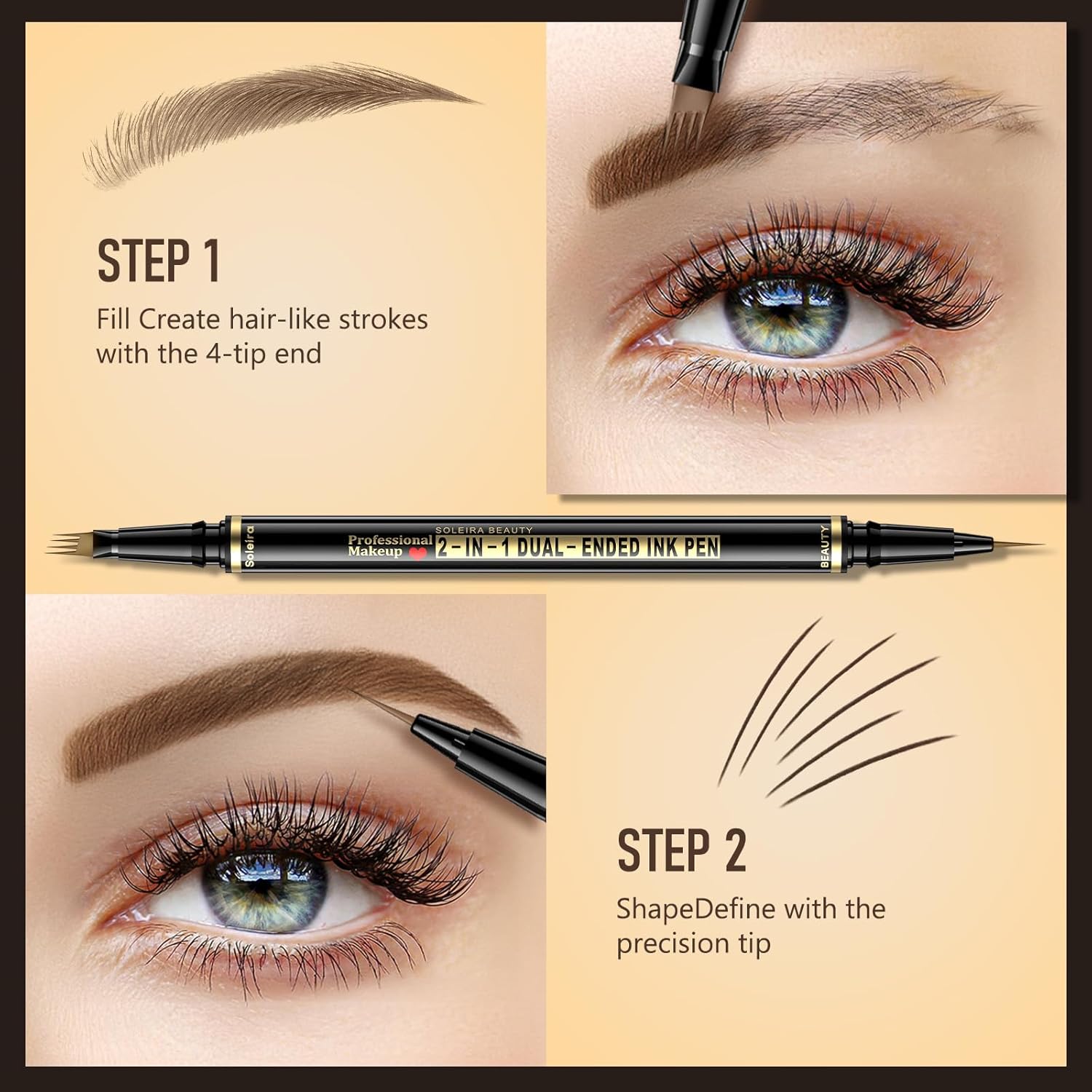 - Dual-Ended Design: This eyebrow kit includes a 4-tip microblading eyebrow pen for natural, hair-like strokes and a single precision tip for shaping. It also comes with a dual-ended brow brush—one end for blending, the other for perfecting finer details. Achieve flawless brows effortlessly