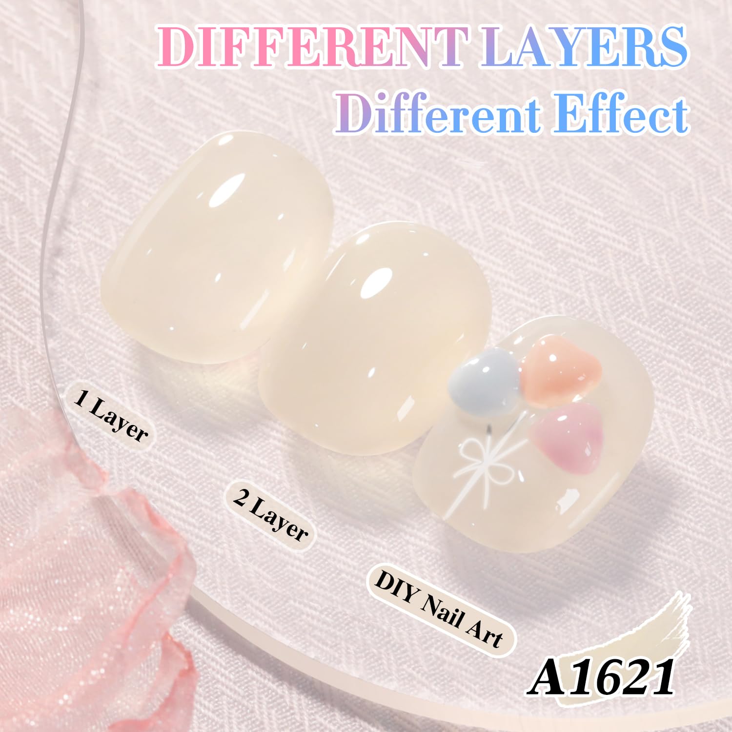 Double Rhythm 0.50 OZ Translucent Gel Polish Same Color Same Bottle Sheer Pastel Neutral Natural Milky 15 ML Jelly UV Nail Art DIY at Home (Beige-A1621)