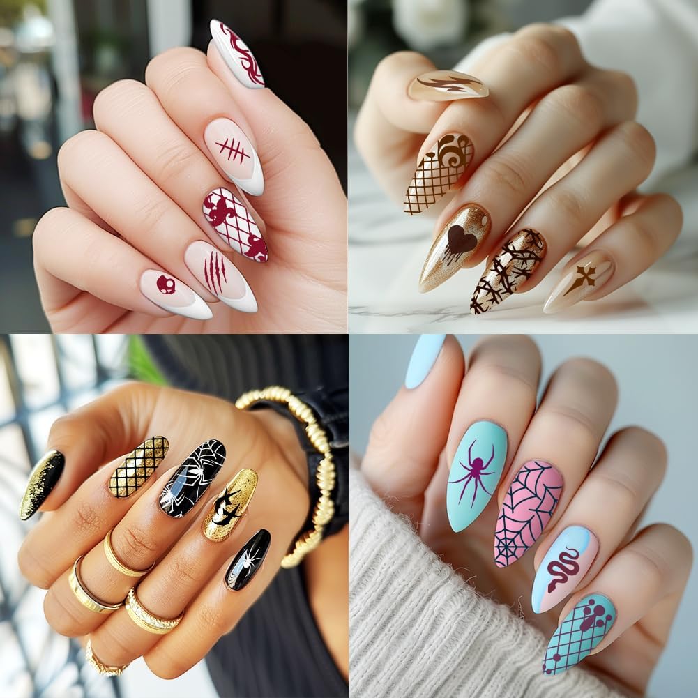 - Package Information: A total of 3 templates, 1 nail stamp and scraper, cobwebs, bones, skulls, bats, thorns and other gothic elements patterns, randomly collocation, leading the nail fashion, the world at your fingertips jump